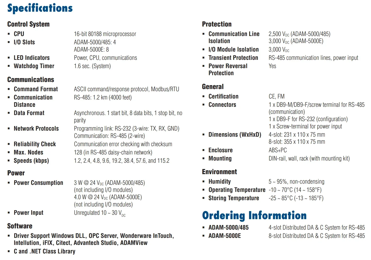 R: Si tiene algún problema, recibirá nuestra respuesta en 24 horas. La solución se ofrecerá al instante.Comprar Advantech ADAM-5000/485, sistema de control de adquisición de datos, RS-485 distribuido