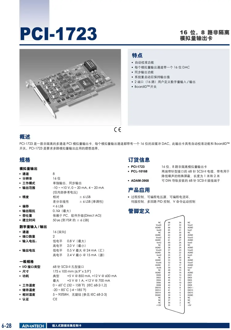 Comprar Para Advantech PCI-1723-BE Función de salida síncrona analógica no aislada de 16 bits y 8 canales Función de calibración automática