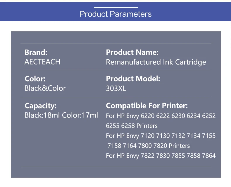 Cartucho de tinta Compatible de repuesto Aecteach 303XL para impresora HP 303 XL HP303 Envy 6220 6230 6232 6234 7130 7134 7830 7855