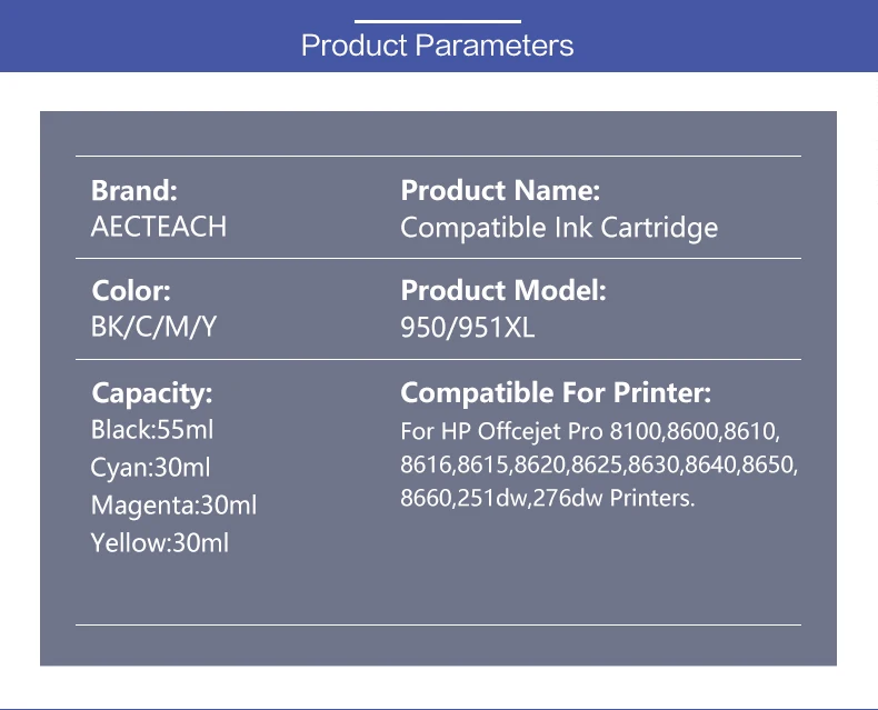 Comprar Aecteach-cartucho de tinta para impresora HP Officejet Pro, para modelos 8100, 8600, 8610, 8615, 8620, 8625, 8630, 251dw, 276dw, 950XL, 951XL, 950 XL