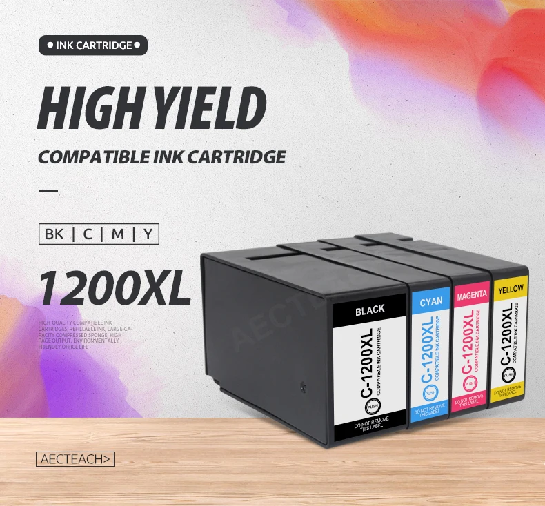 1 Cartridge negro + 1 ×cian + 1 ×Magenta + 1 Cartridge amarillo cartucho Compatible para 1200XL, completo con tinta, con chip