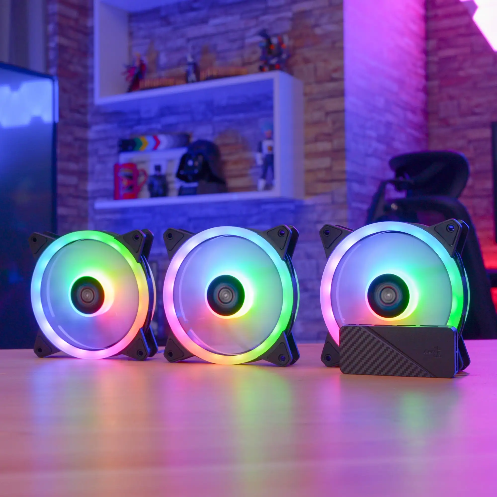 Comprar Aerocool DUO12PRO, Kit 3 Ventiladores para PC 120mm, ARGB LED Dual Ring, Ventilador PC Sistema Antivibración