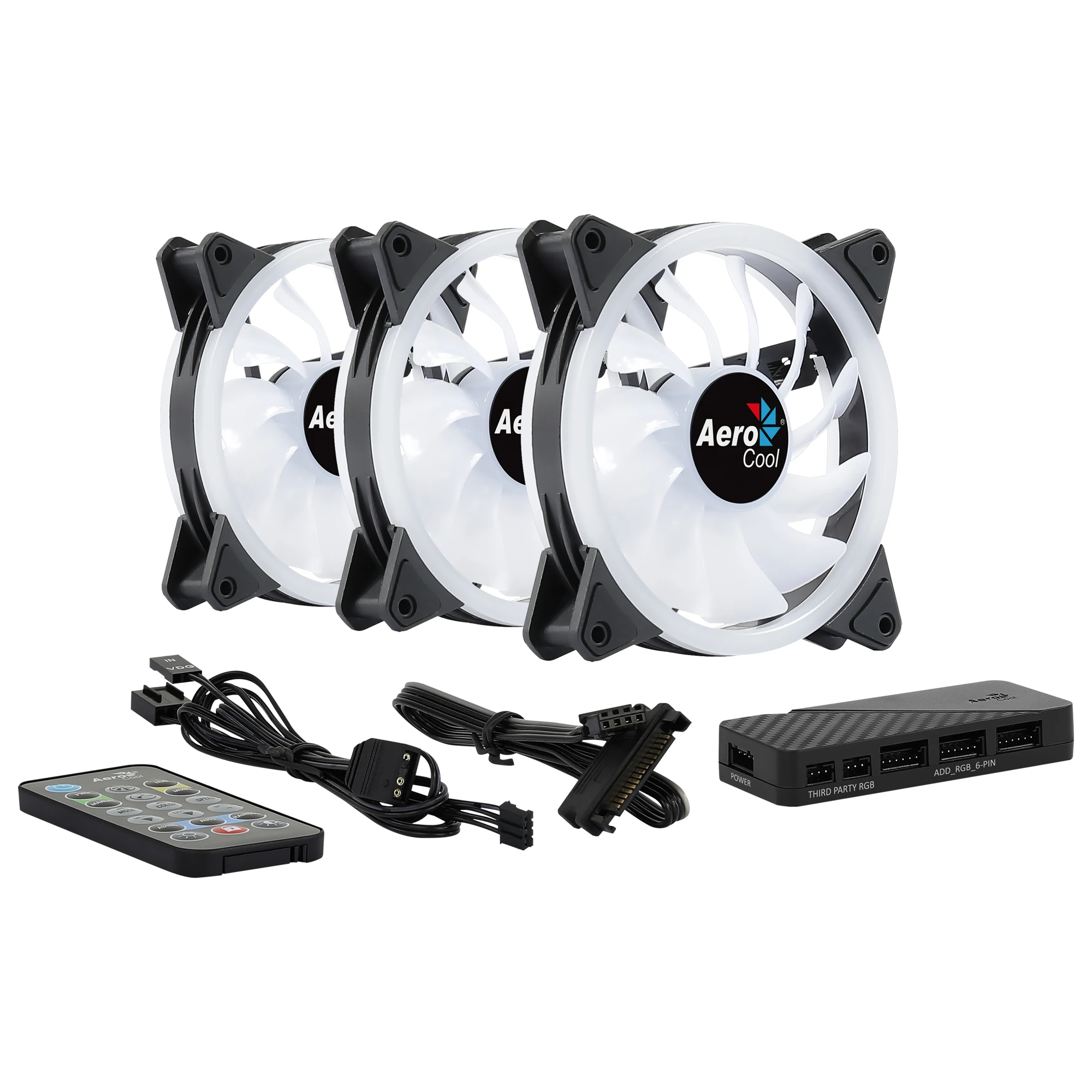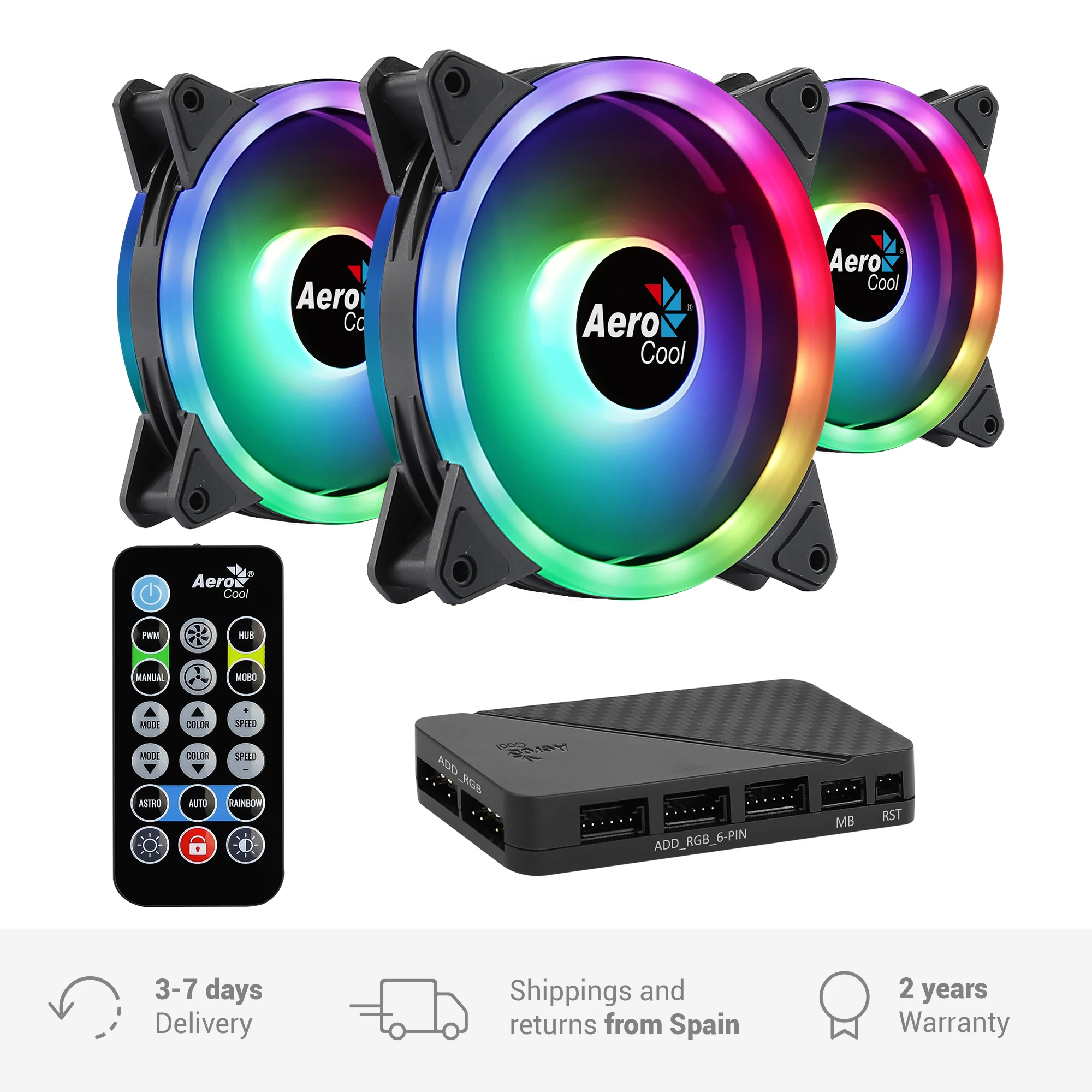 Comprar Aerocool DUO12PRO, Kit 3 Ventiladores para PC 120mm, ARGB LED Dual Ring, Ventilador PC Sistema Antivibración