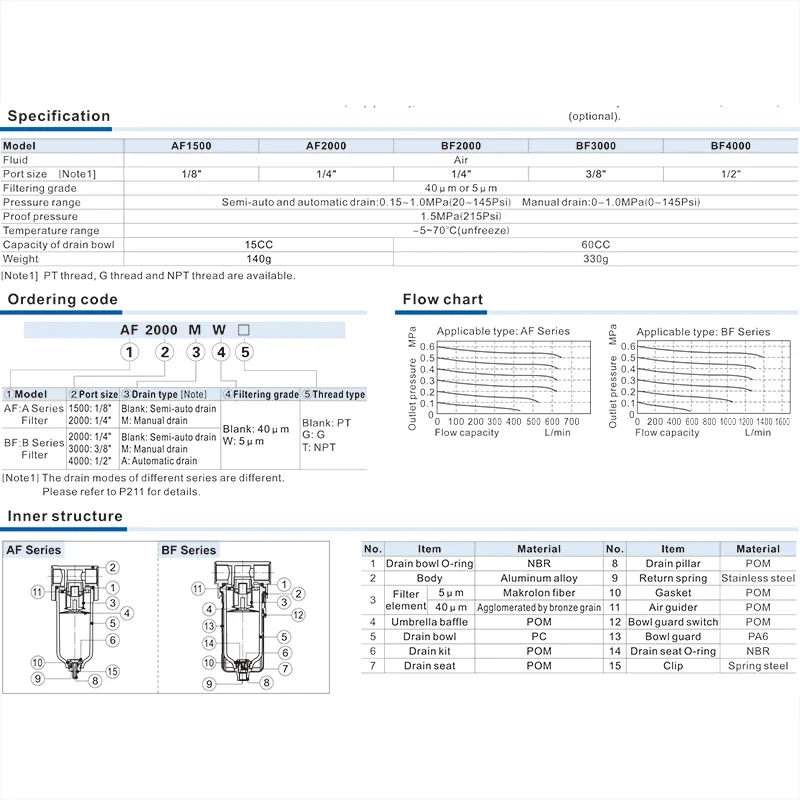 AF2000 1/4" componente neumático del filtro del tratamiento de la fuente de aire