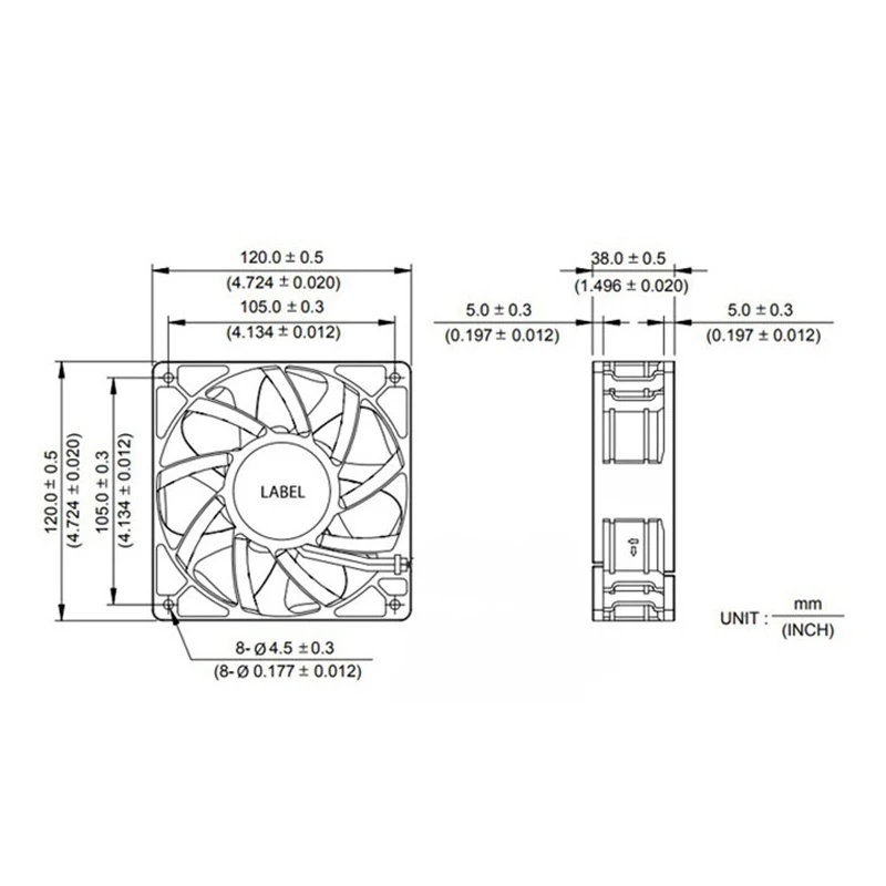 Modelo: AFC1248DETamaño: 120x120x38mmRodamiento: Rodamiento de bolas dobleElectricidad estándar: presión 48VCorriente: 1,64 APotencia: 78,72WMantenga un tiempo de funcionamiento continuo óptimo de 10.0000 horasInterfaz del ventilador: cuatro cablesCaracterísticas adicionales: Admite control de temperatura inteligente PWM, soportevelocidad