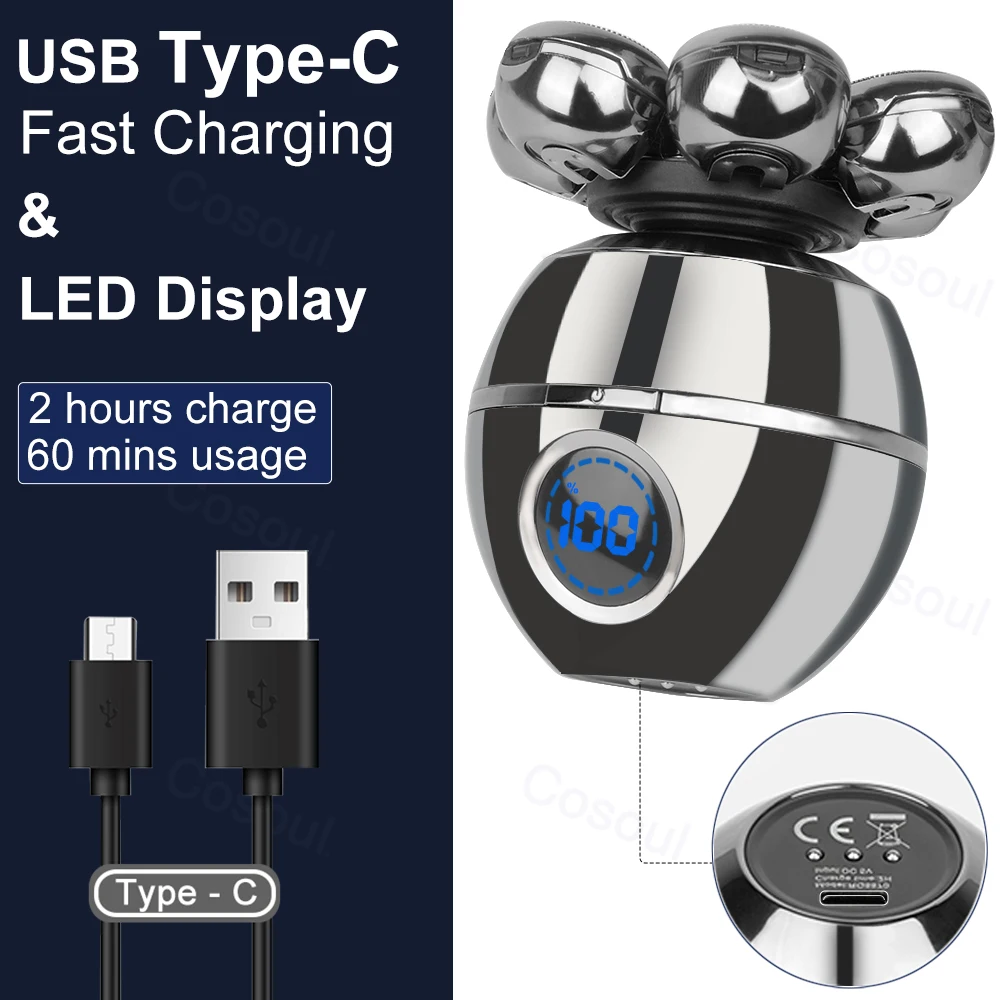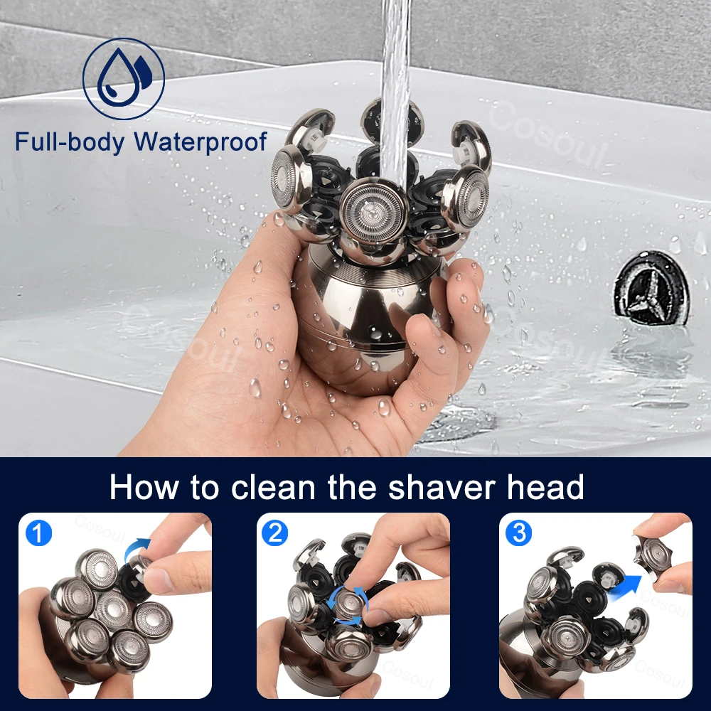 Comprar Afeitadora eléctrica para hombre, máquina de afeitar para cabeza calva, 5 en 1, recortadora de barba, 7