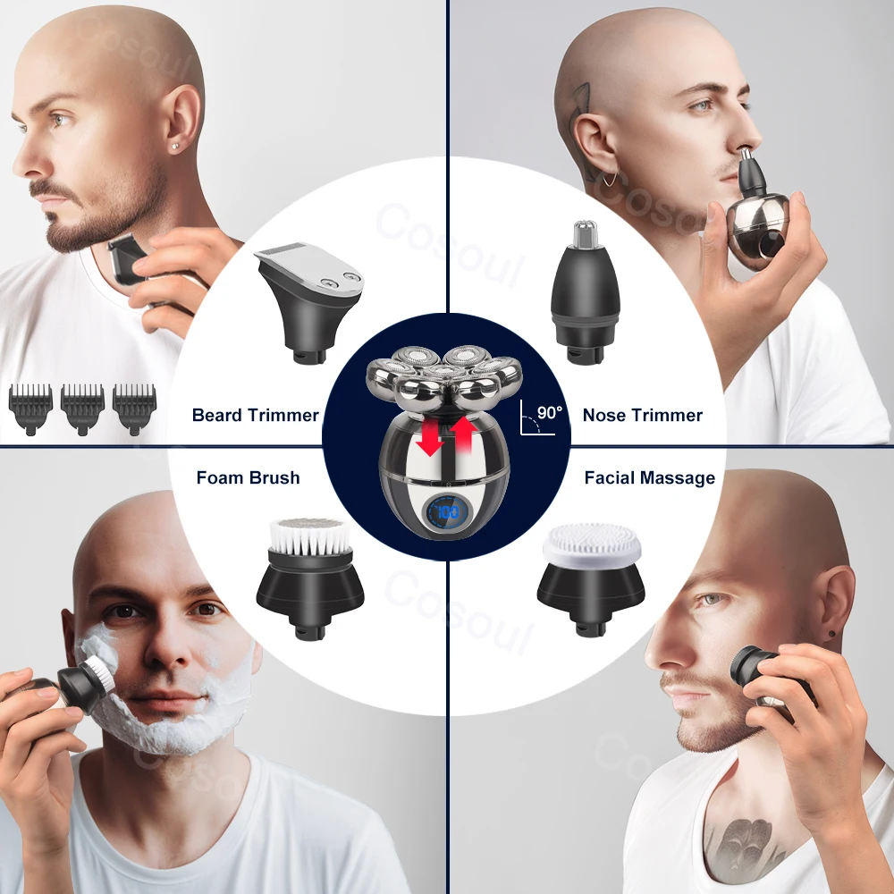 Comprar Afeitadora eléctrica para hombre, máquina de afeitar para cabeza calva, 5 en 1, recortadora de barba, 7