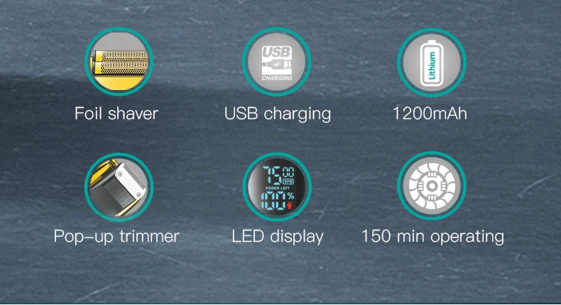 4. Pantalla LED: Esta máquina de afeitar para hombres puede mostrar claramente la potencia actual y le recuerda que cargue a tiempo.