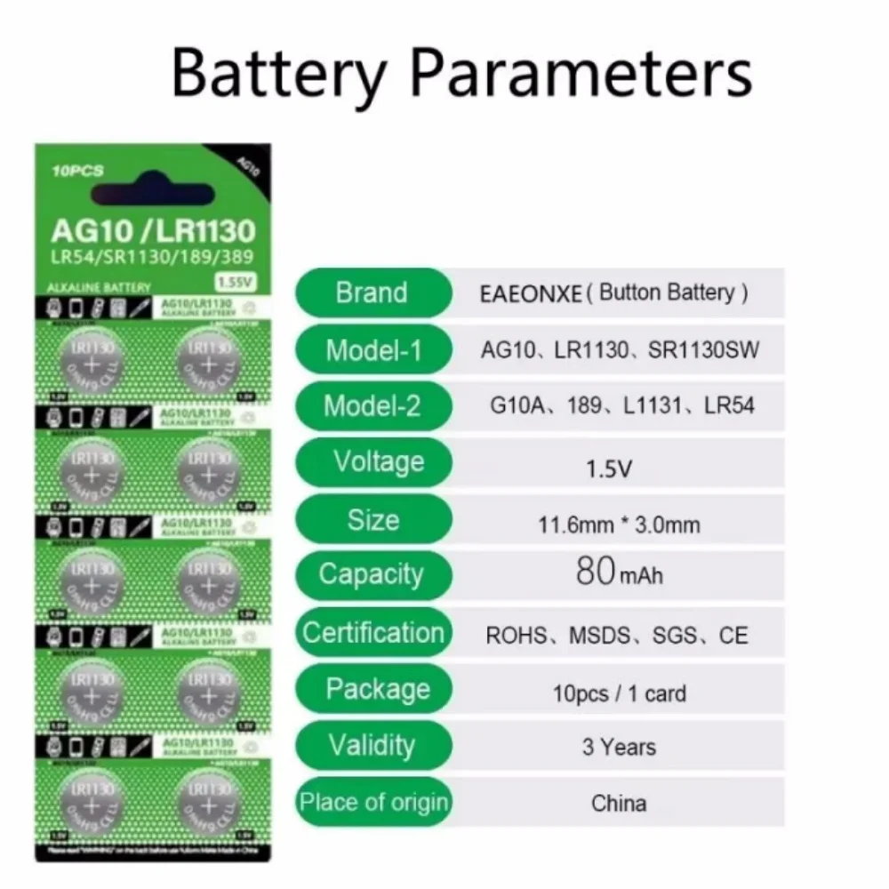 AG13 LR44 A76 357 357A LR1154 SR1154 SR44 1.55V batería alcalina para reloj calculadora llave de coche botón de reloj remoto pila de moneda
