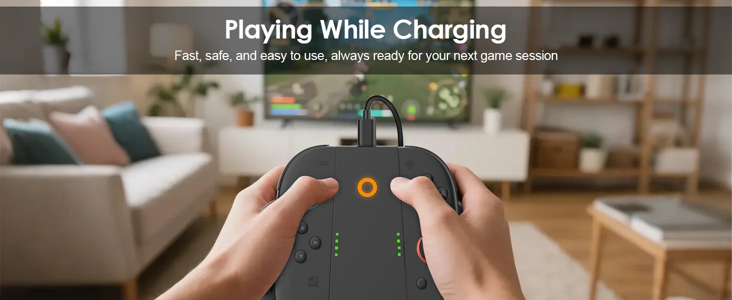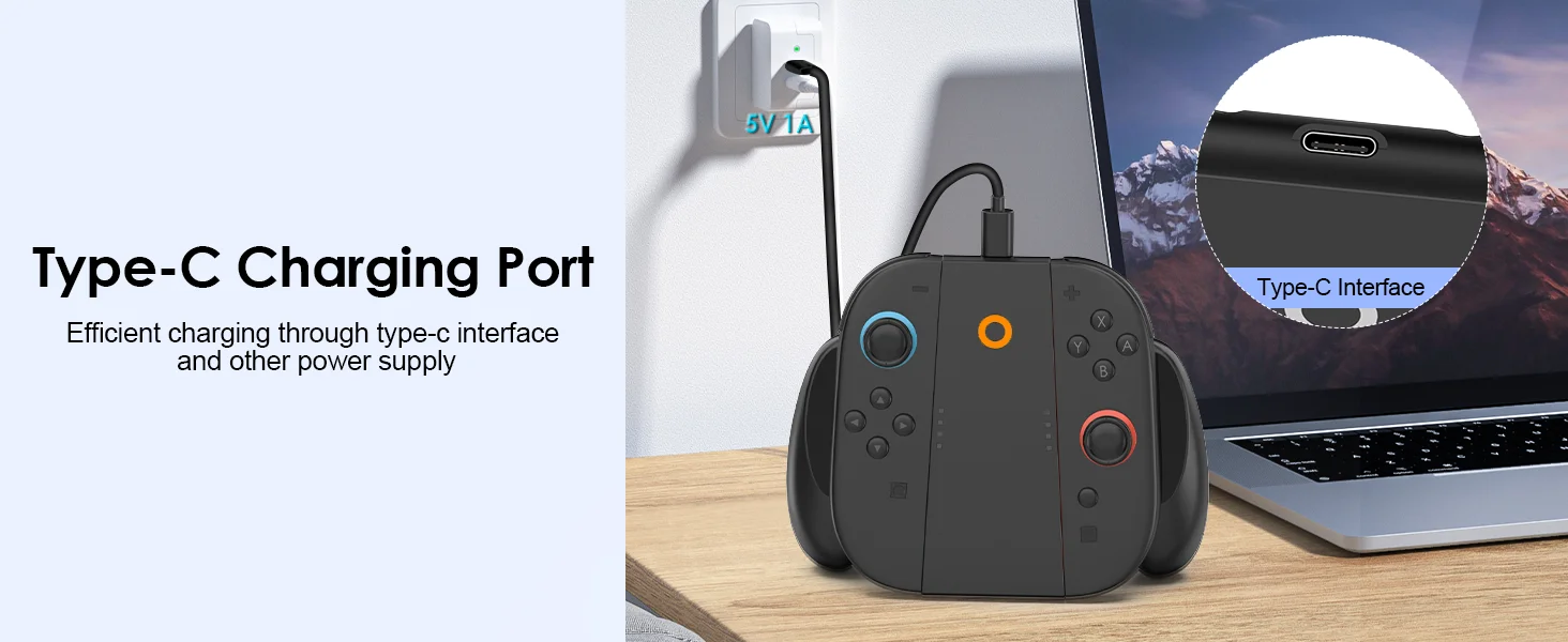Carga magnética, reproducir mientras se carga: alinee el controlador con los lados izquierdo y derecho de la interfaz del mango, cerca de una cierta distancia, la instalación de adsorción automática de succión magnética, encaje en su lugar para comenzar a cargar a través del cable USB autoajuste, muy conveniente.El controlador se puede cargar a alta velocidad al mismo tiempo, el tiempo máximo requerido es de solo 2 horas.No es necesario perder un minuto mientras se carga y continúa jugando.Compatible con USB 3.0 puerto o adaptador de carga Switch2 original.