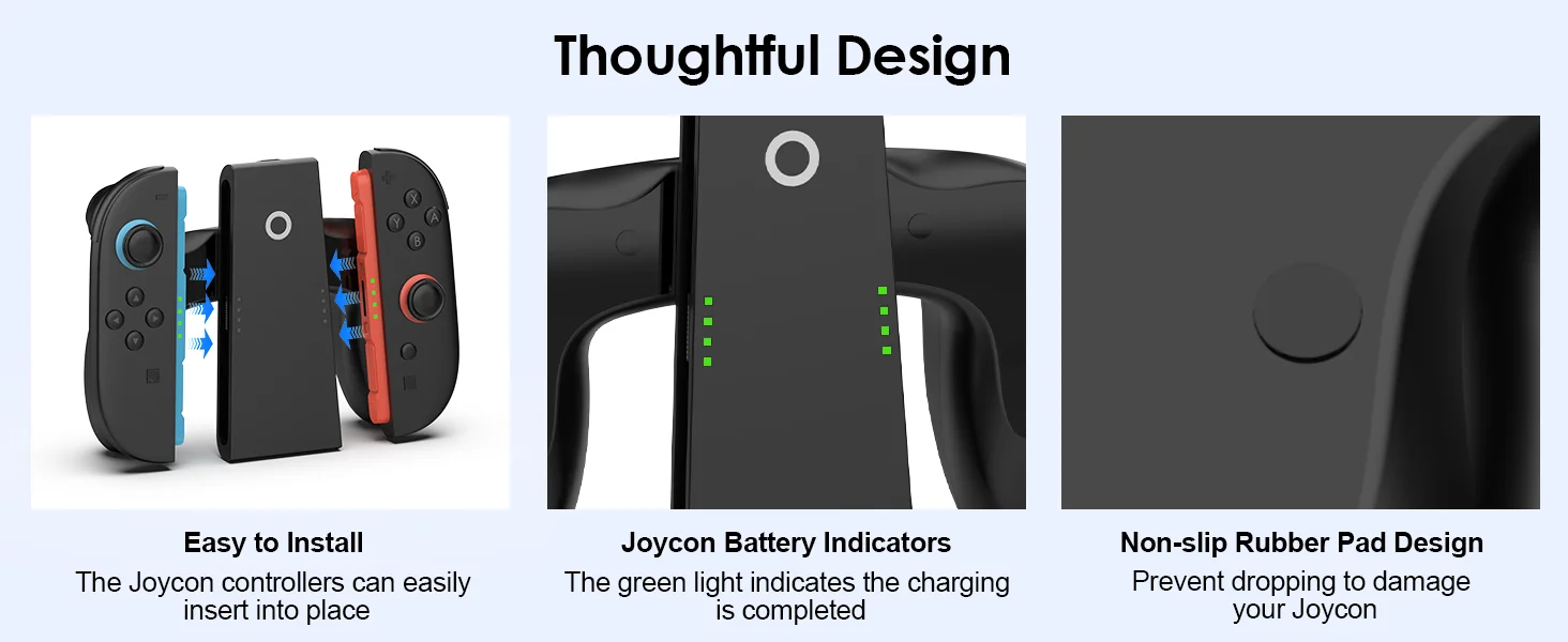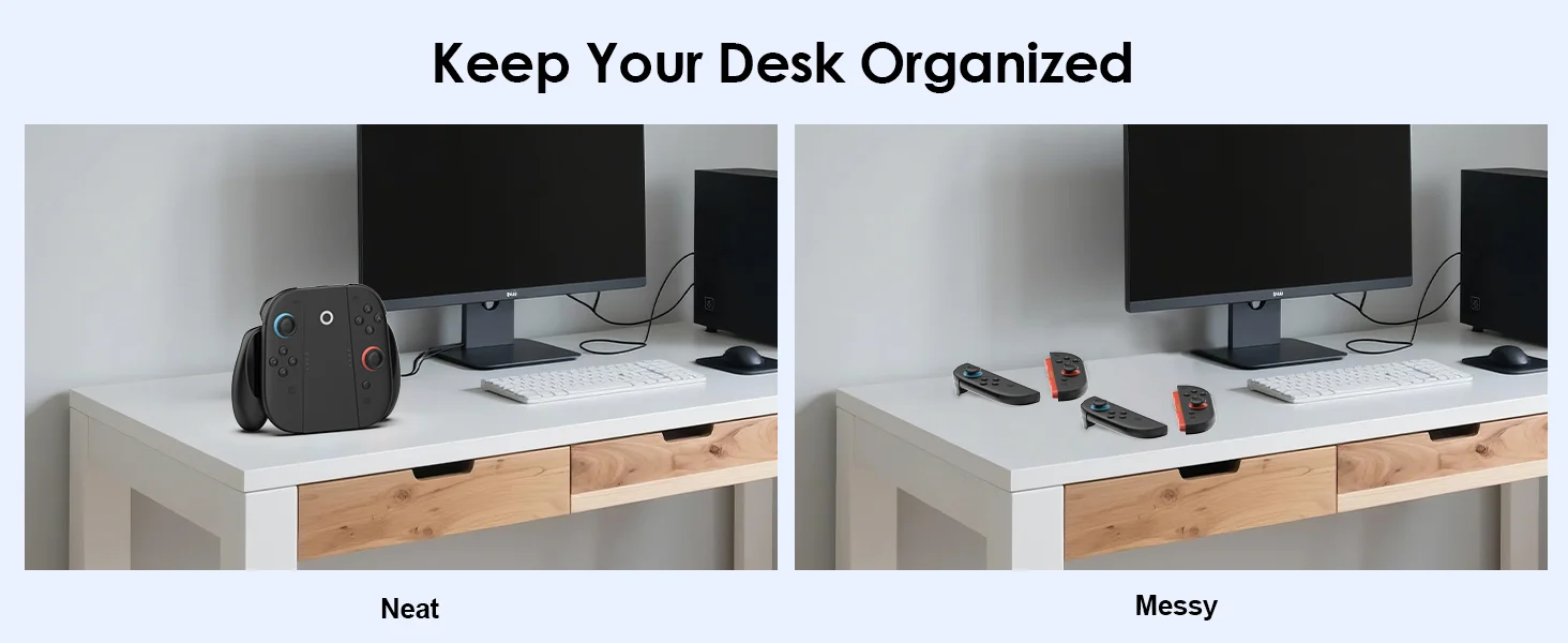 Para el NUEVO Switch 2 Comfort Grip de 2025: el nuevo agarre de carga combina los controladores izquierdo y derecho en un controlador de tamaño completo cómodo y ligeramente más grande para mejorar la unidad y la retroalimentación táctil.Puede jugar mientras se carga y también usar este producto directamente como joystick cuando no necesita cargarlo, protegiendo su consola del desgaste excesivo.Excelente tacto, liviano y fácil de transportar, perfecto para los entusiastas de los juegos que aman los interruptores en movimiento.