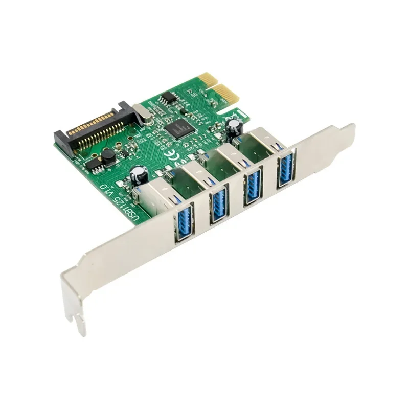 Comprar Agregar en tarjeta PCIE USB3.0 Tarjeta de expansión de 4 puertos Chip de control de host de 5 Gbps de alta velocidad NEC 720201 Convertidor adaptador de interfaz SATA de 15 pines