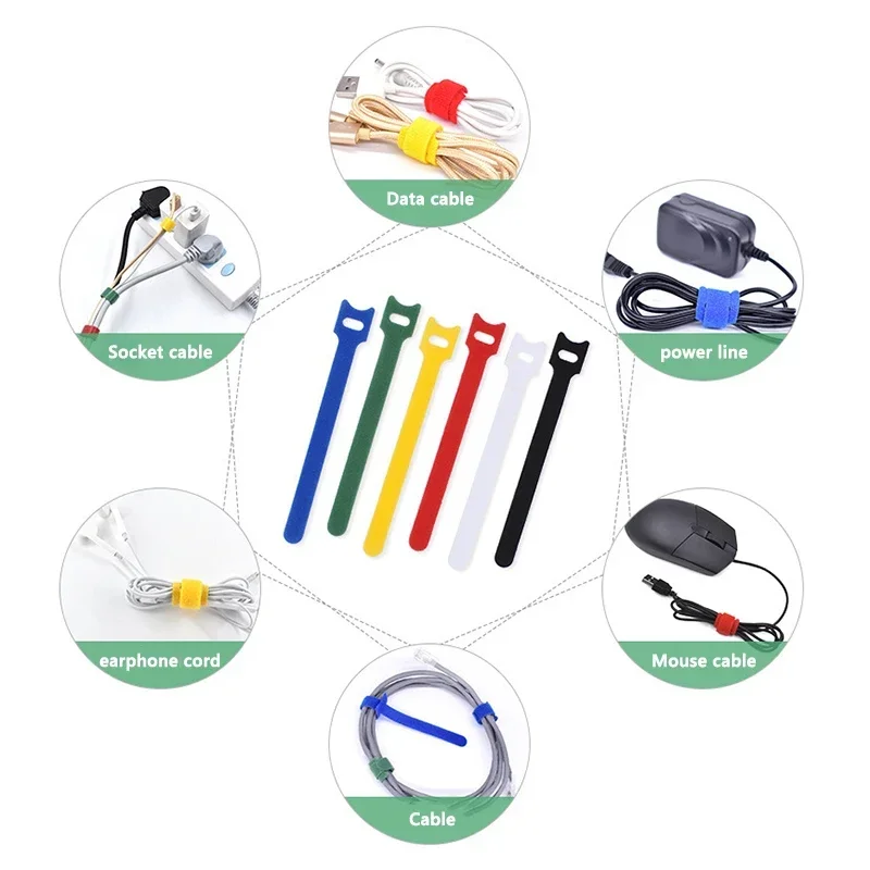 Agregue Auto Adhesivo Velcros cinta larga Cable gancho de computadora Nylon bridas de datos reutilizables caja de artes Cable de bucle piezas coloridas DIY