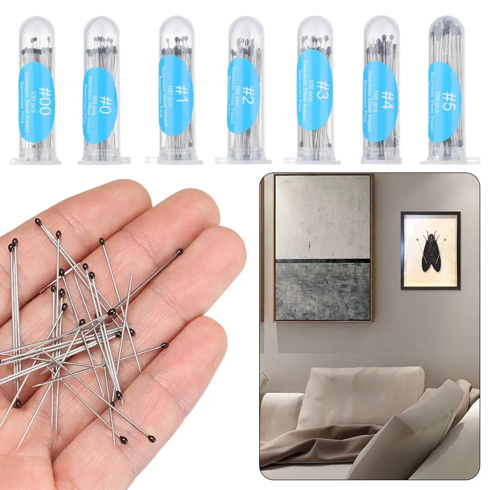 Comprar Aguja de acero inoxidable para espécimen, alfileres de insectos con caja de plástico para laboratorio escolar, educación, entomología, disección corporal, 100 piezas