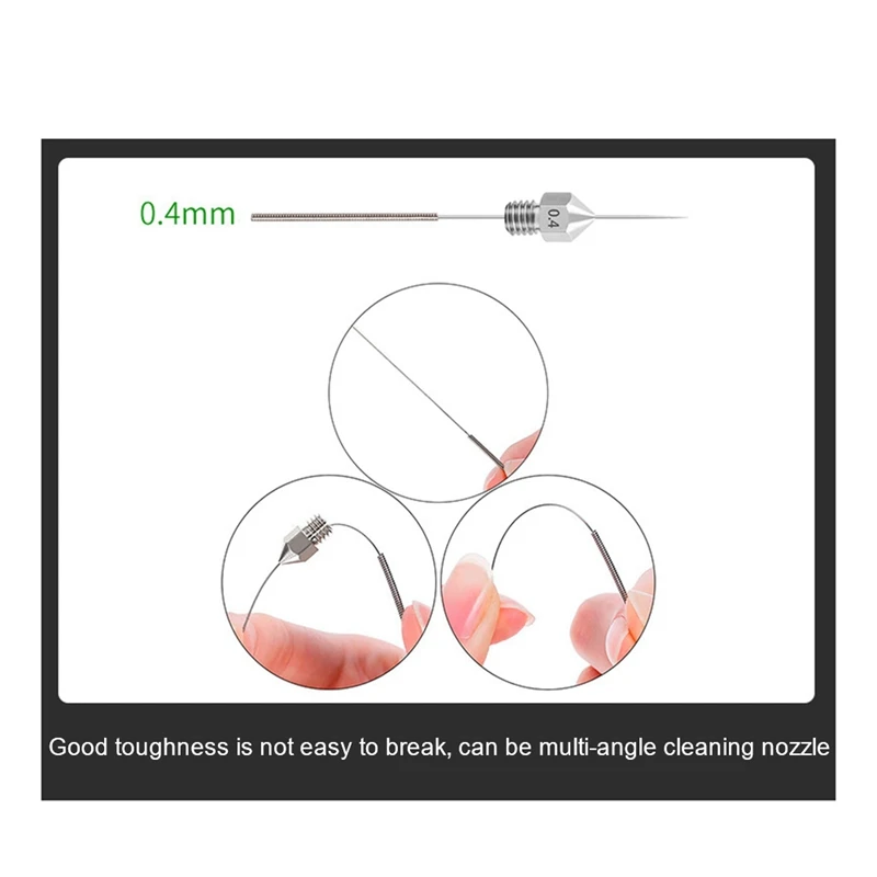 Aguja de acero de limpieza de 5 piezas MK8E Boquilla 3D Boquilla de impresión 3D Aguja de limpieza Taladro de 0,4mm