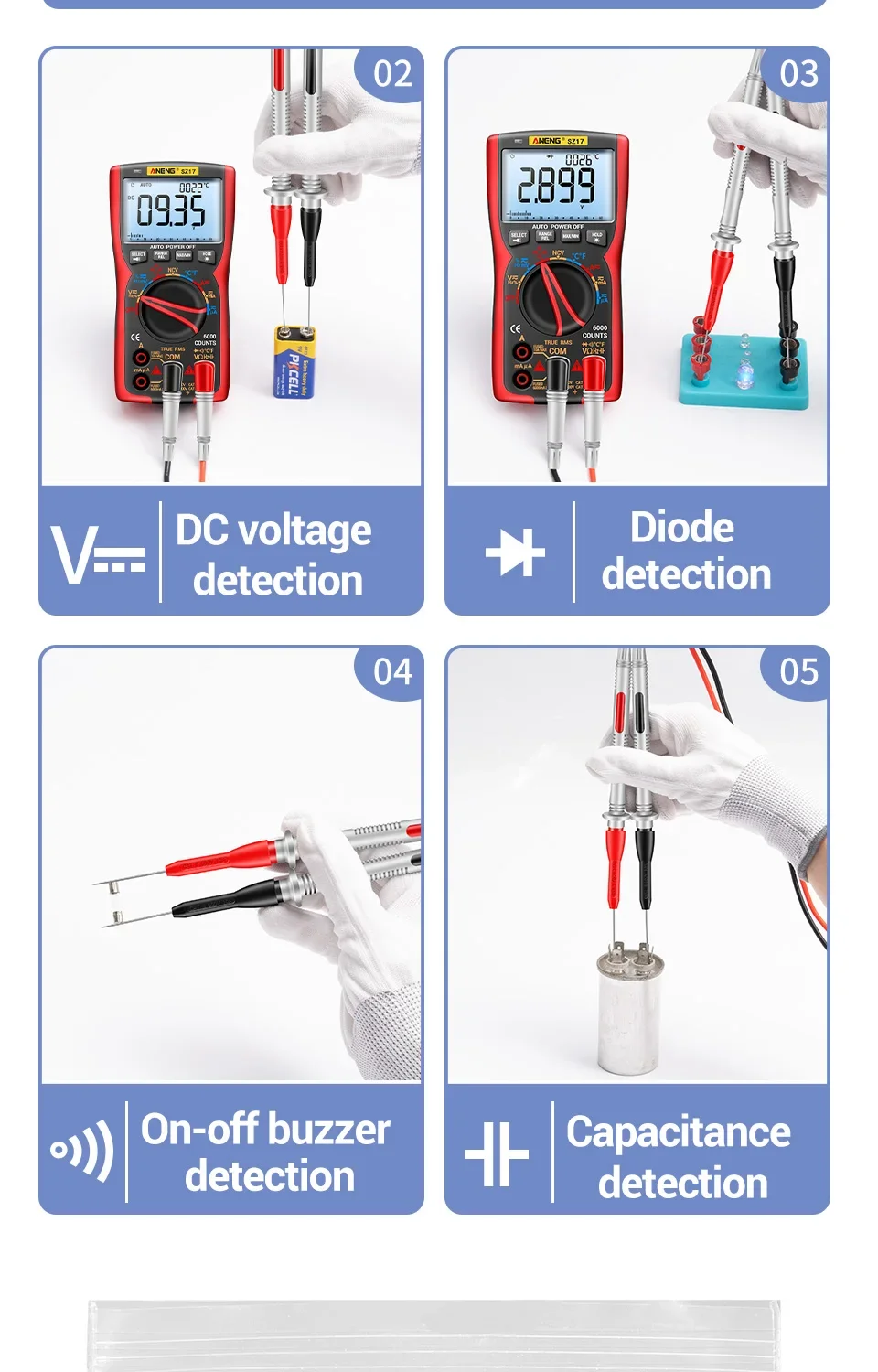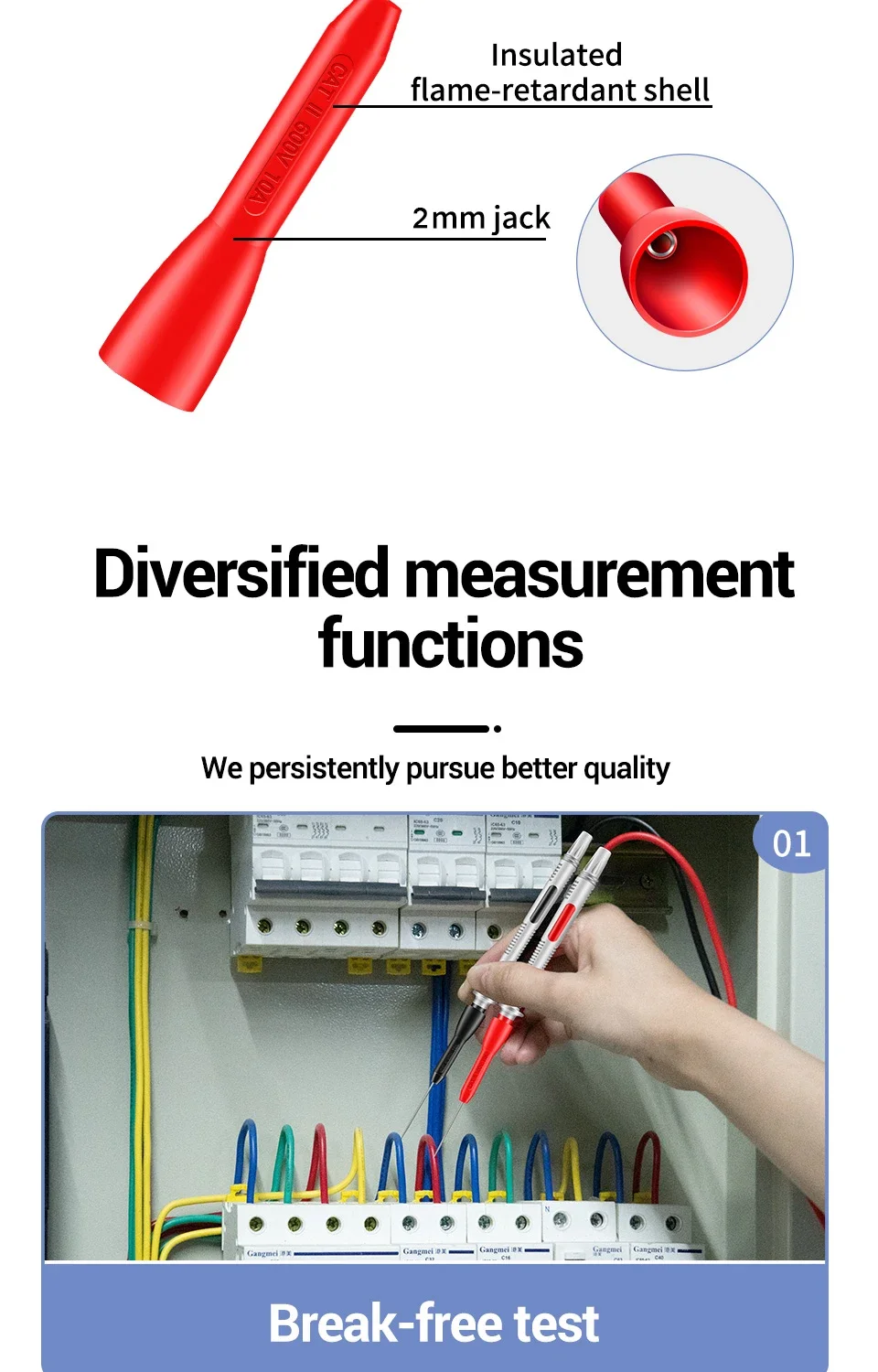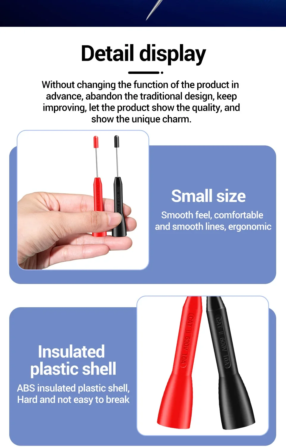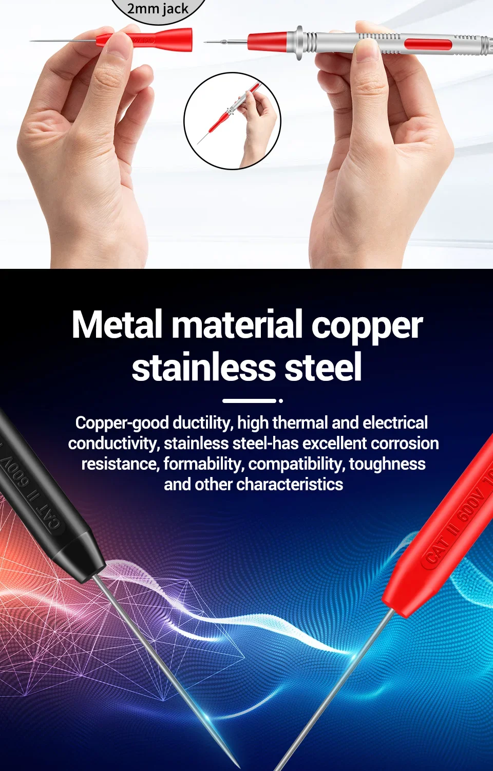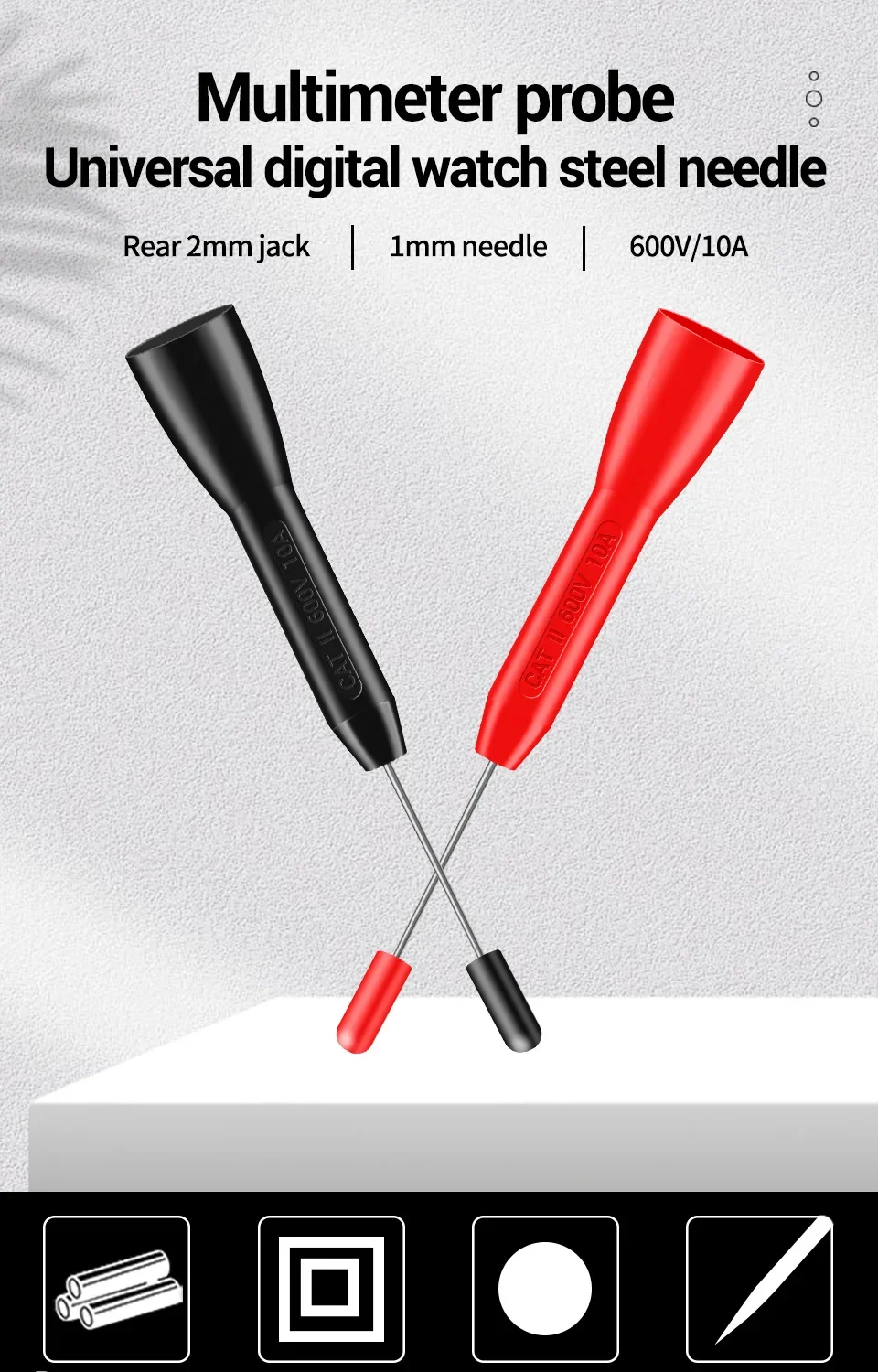 ANENG PT2002Aguja perforadora de aislamiento, Pin de 1mm, sonda de prueba de multímetro Universal no destructiva, 10A, 600V para Cable de prueba de 2mm
