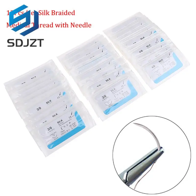 Comprar Aguja quirúrgica Dental de seda, hilo médico de sutura, Kit de práctica quirúrgica, 75cm, 2/0, 3/0, 4/0, 12 unidades, gran oferta
