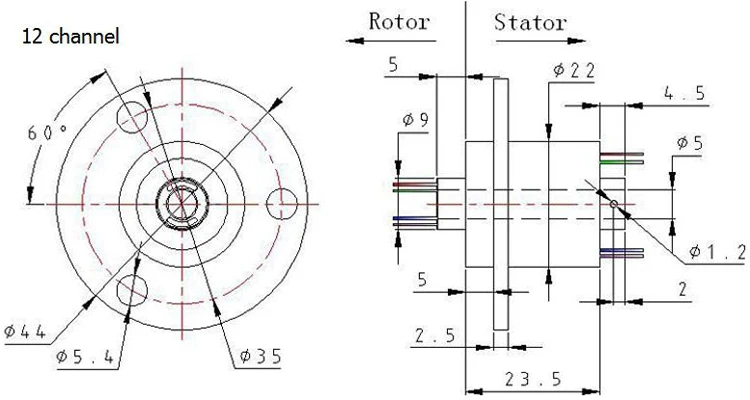 Conector de rotación de anillo colector de eje hueco 2/4/6/12 canales 2A con anillos de orificio de 5mm para cámara Gimbal/anillos de rueda gigante