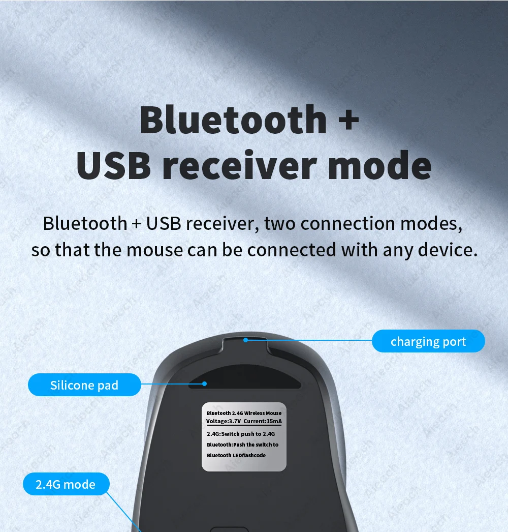 Receptor Bluetooth + USB, dos modos de conexión, para que el ratón se pueda conectar con cualquier dispositivo.