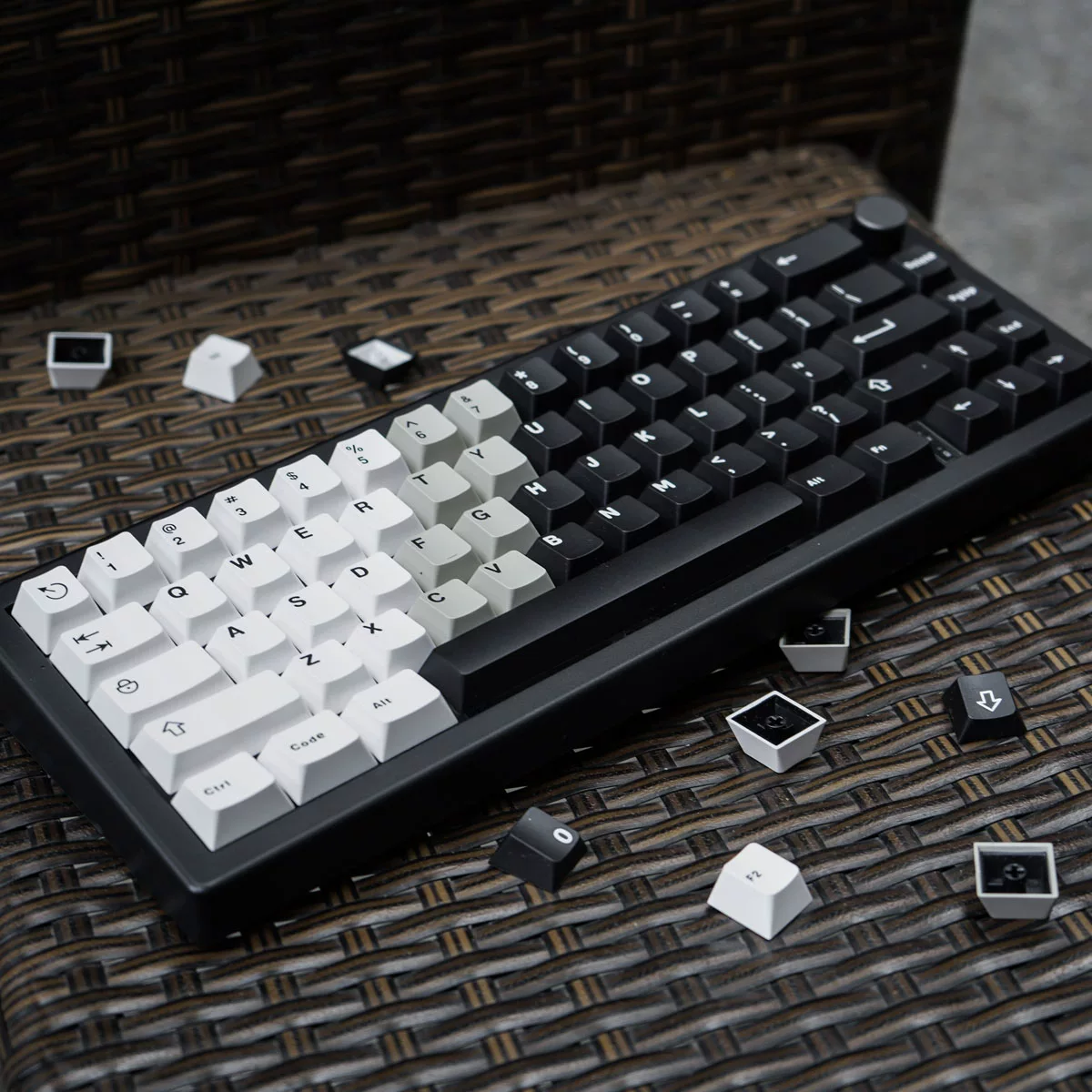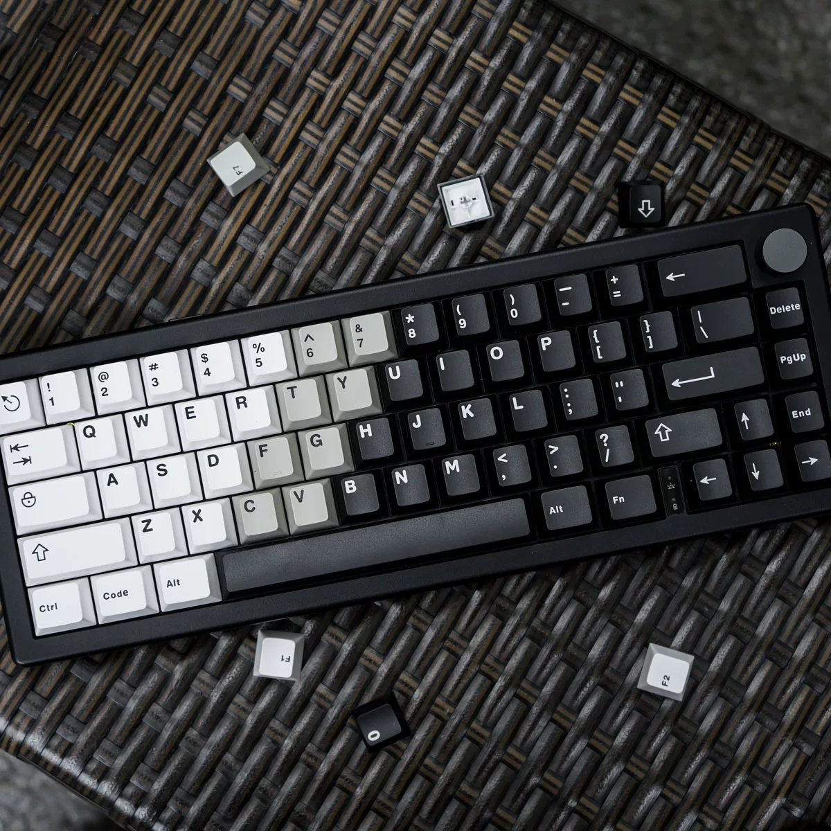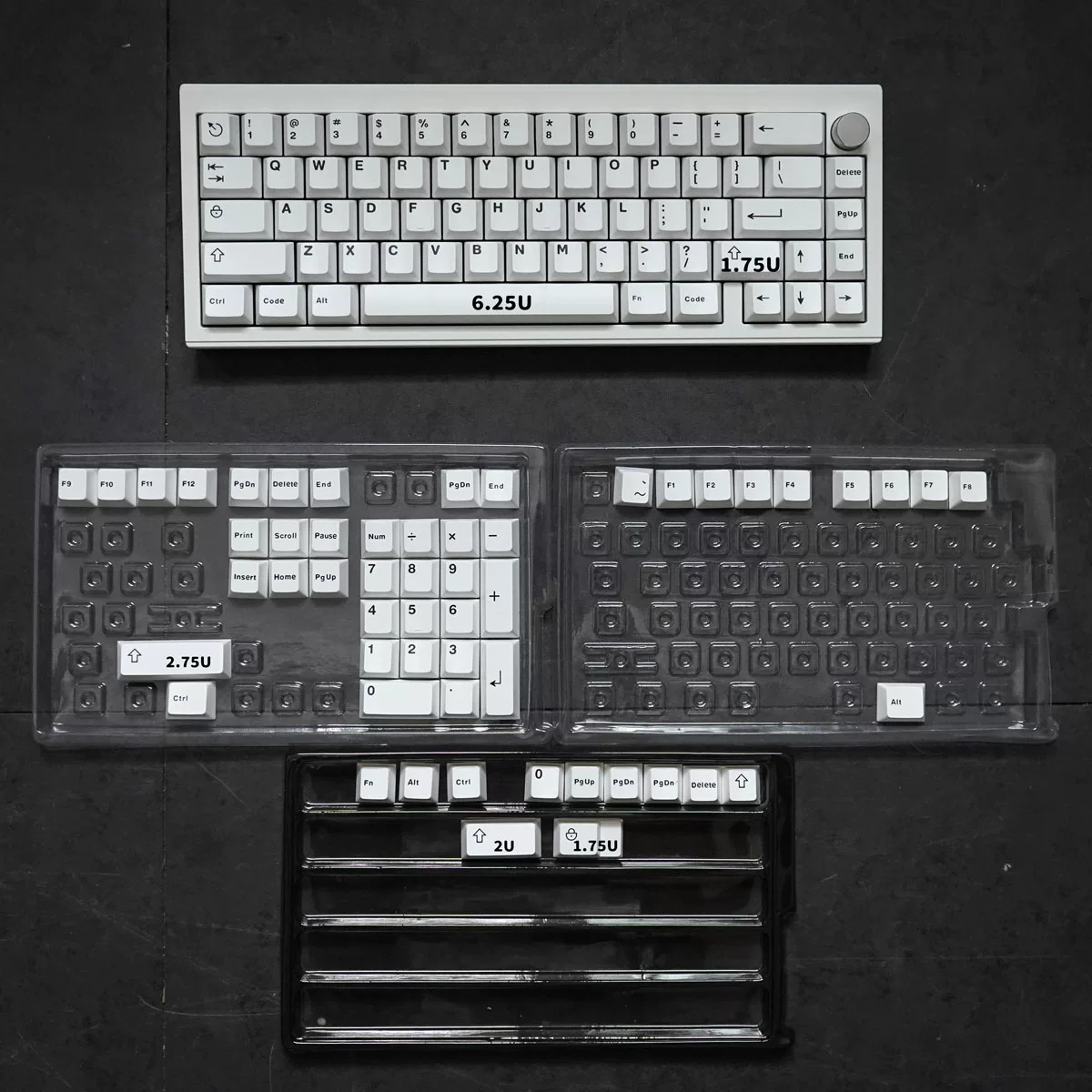 Las teclas son geniales, por supuesto que las expandí en blanco-nuevo. Al haber recibido el color del papel tapiz, estaba un poco molesto, pero nada. teclas, si es algo, como completas en la placa base 60.
