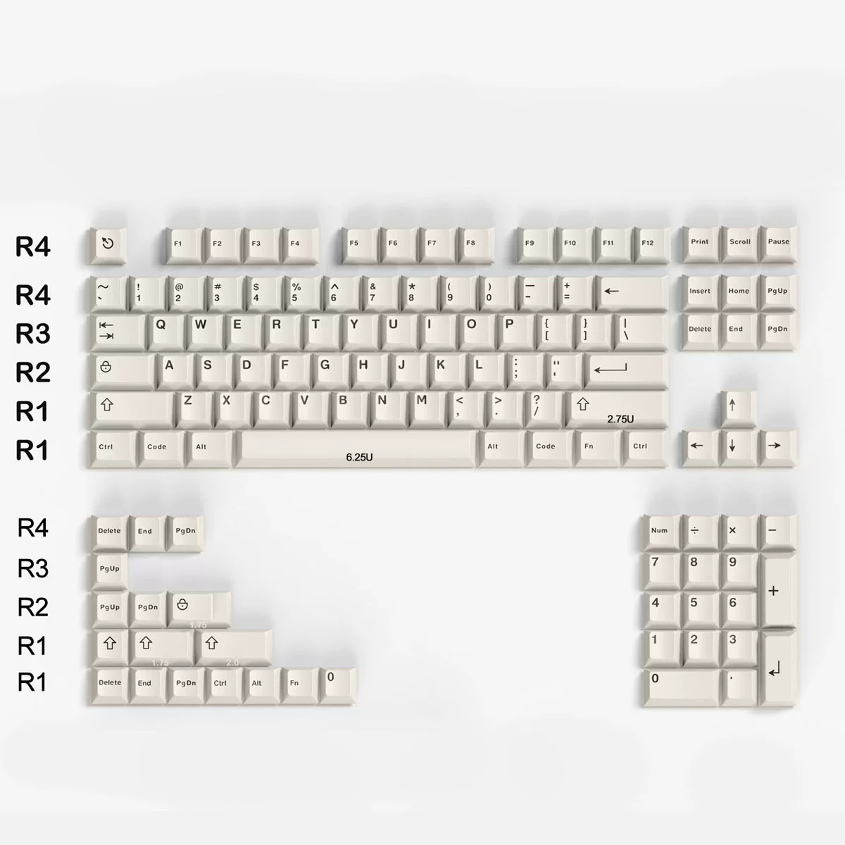 Con versión de área numpadIncluye cambio 1.75U 2U, no incluye barras espaciadoras 2.25U, 2.75U, 7U.