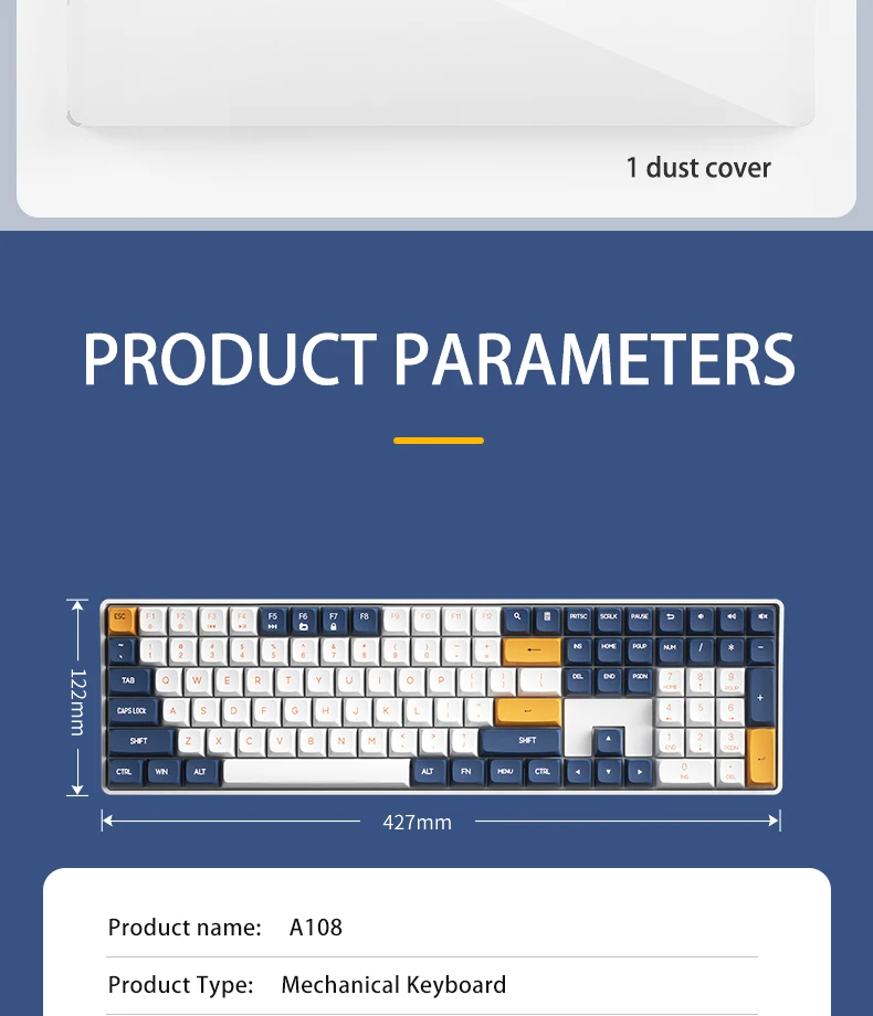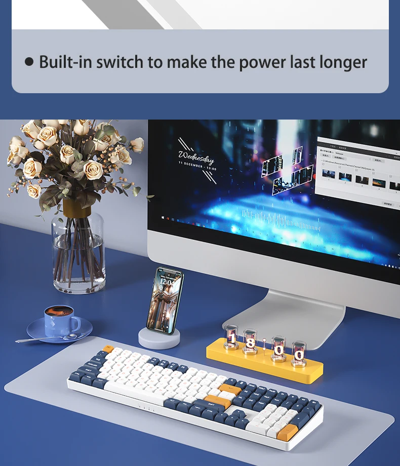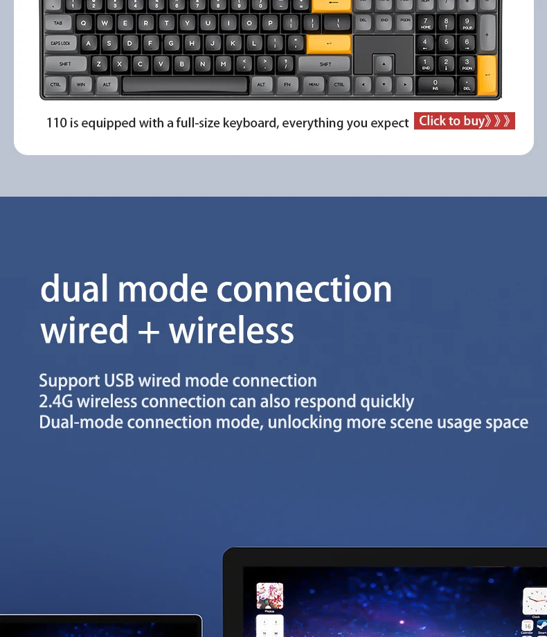 7.Diseño: 110 teclas, diseño de diseño compacto, que ahorra mucho espacio.