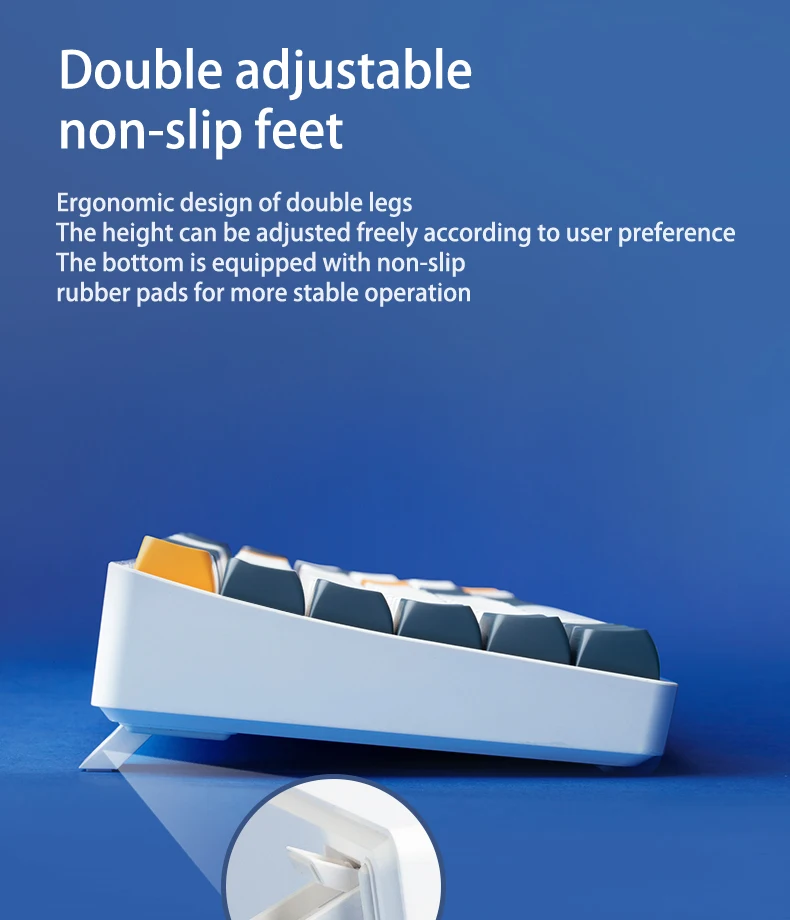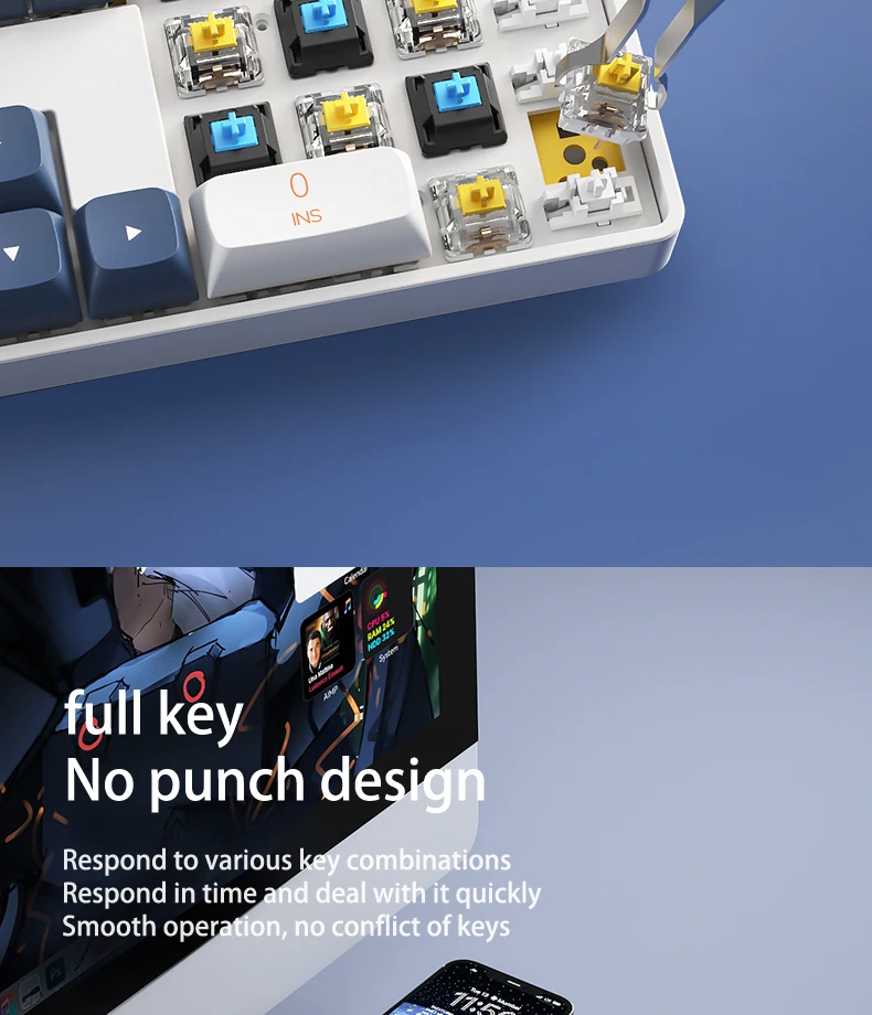 El interruptor azul/interruptor amarillo es el interruptor más característico del teclado mecánico.Ya sea el sonido o la sensación, puede permitirle encontrar un placer especial.La sensación de párrafo de 4 capas de doble capa, la retroalimentación de la clave es evidente, sin importar la palabra de código. Ya sea un juego o un juego, puede emitir ese sonido y ritmo nítidos, que es un regusto infinito.¡La duración de 50 millones de pulsaciones te libera de preocupaciones!
