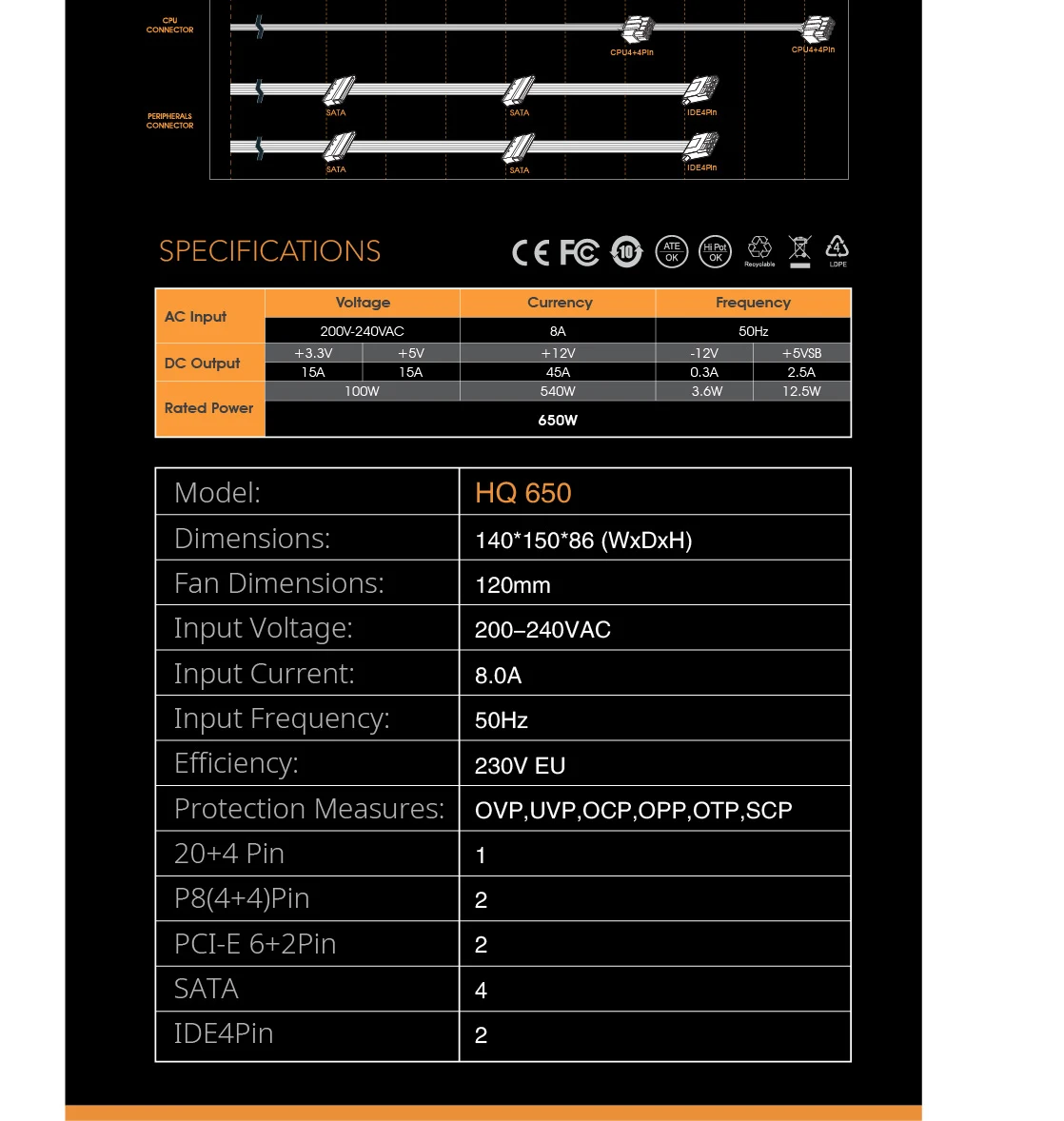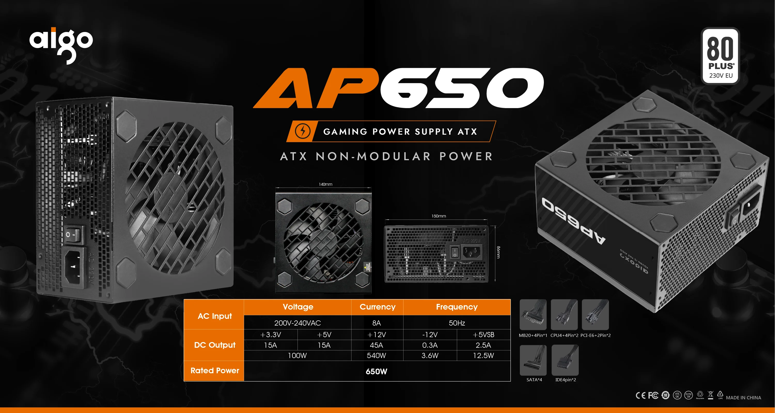 3: Tamaño de la fuente de alimentación: 140 mm * 150 mm * 86 mm