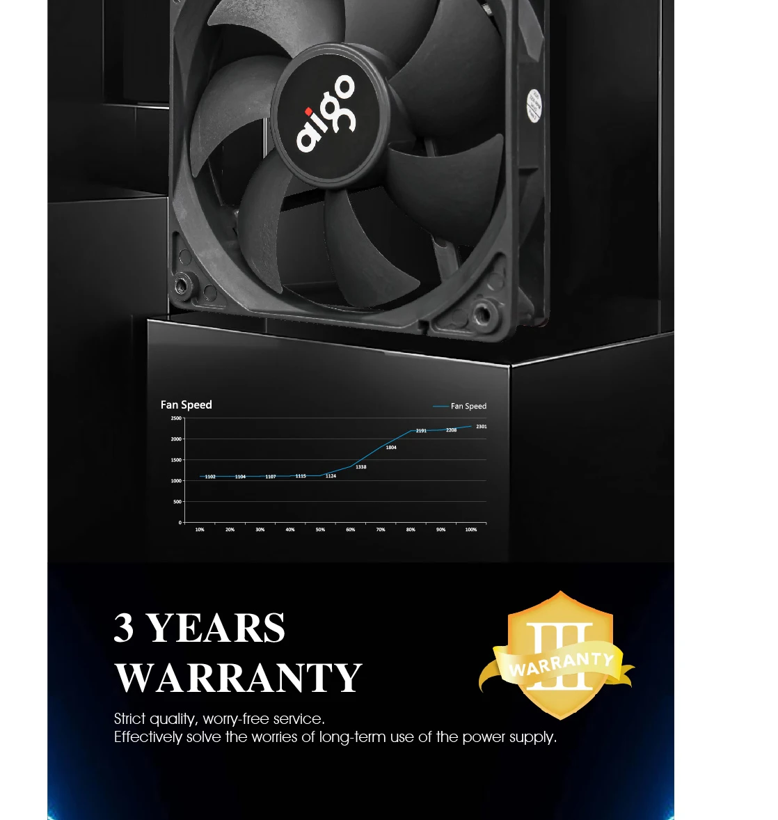 Tercera Fuente Aigo que compro y como siempre cumpliendo con las expectativas . Materiales de construcción muy buenos , 0 sonoridad . Relación calidad precio no creo que haya algo mejor en el mercado . El envío también fue rápido por parte de AliExpress . Recomendable 100%