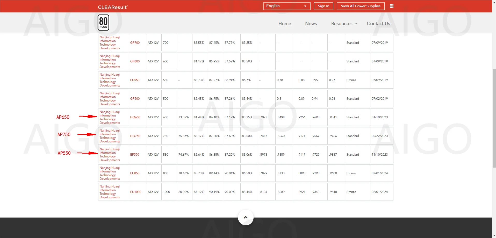 Fuente de alimentación AP550/AP650/AP750 80 PLUS consulta de autenticación