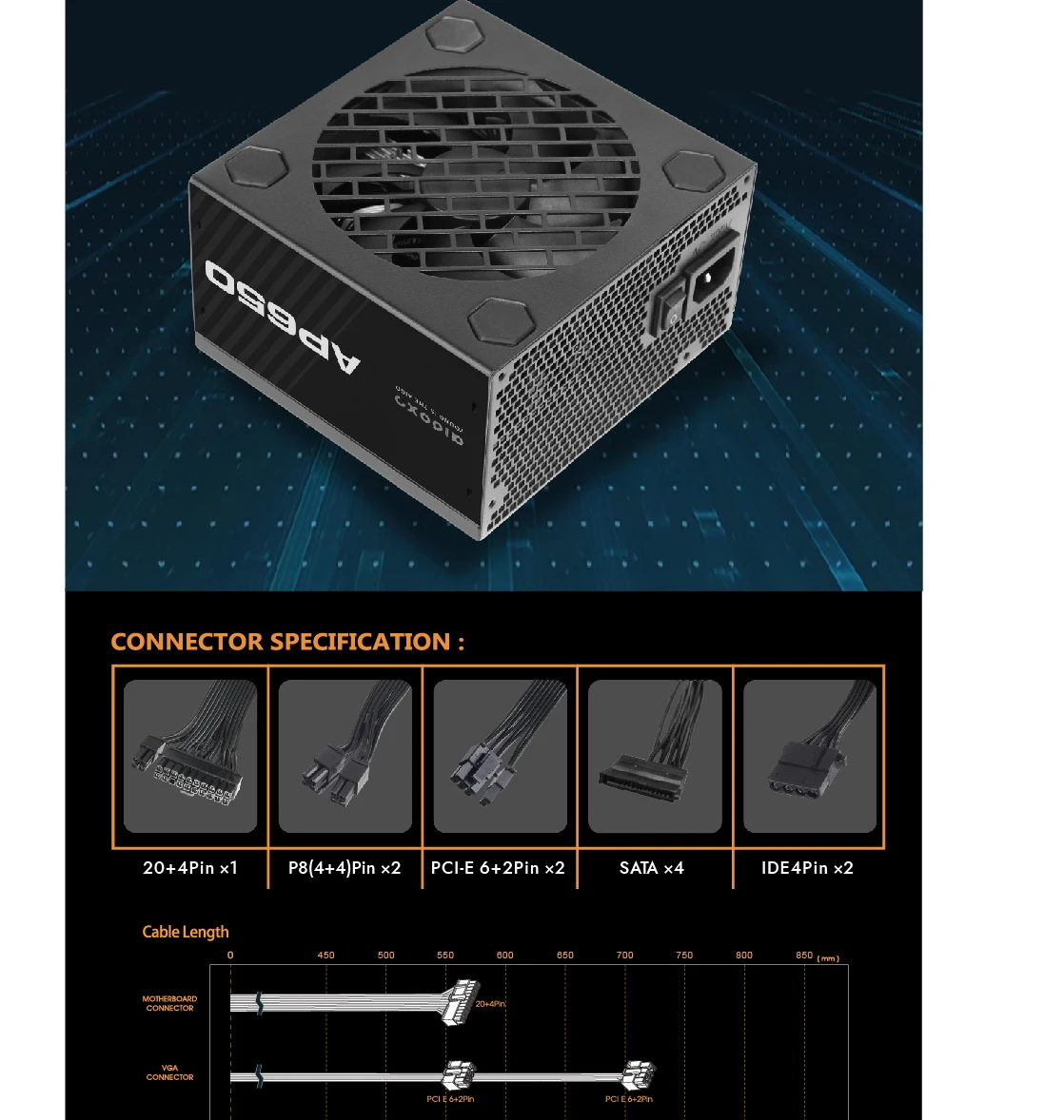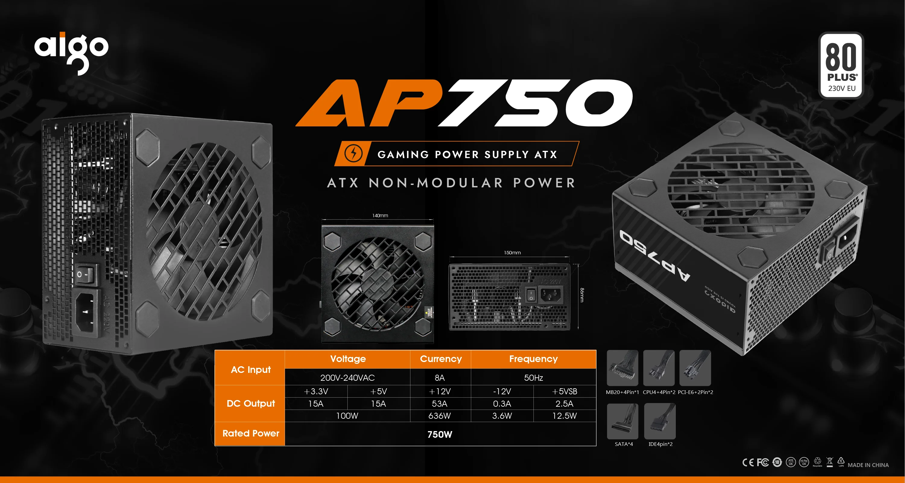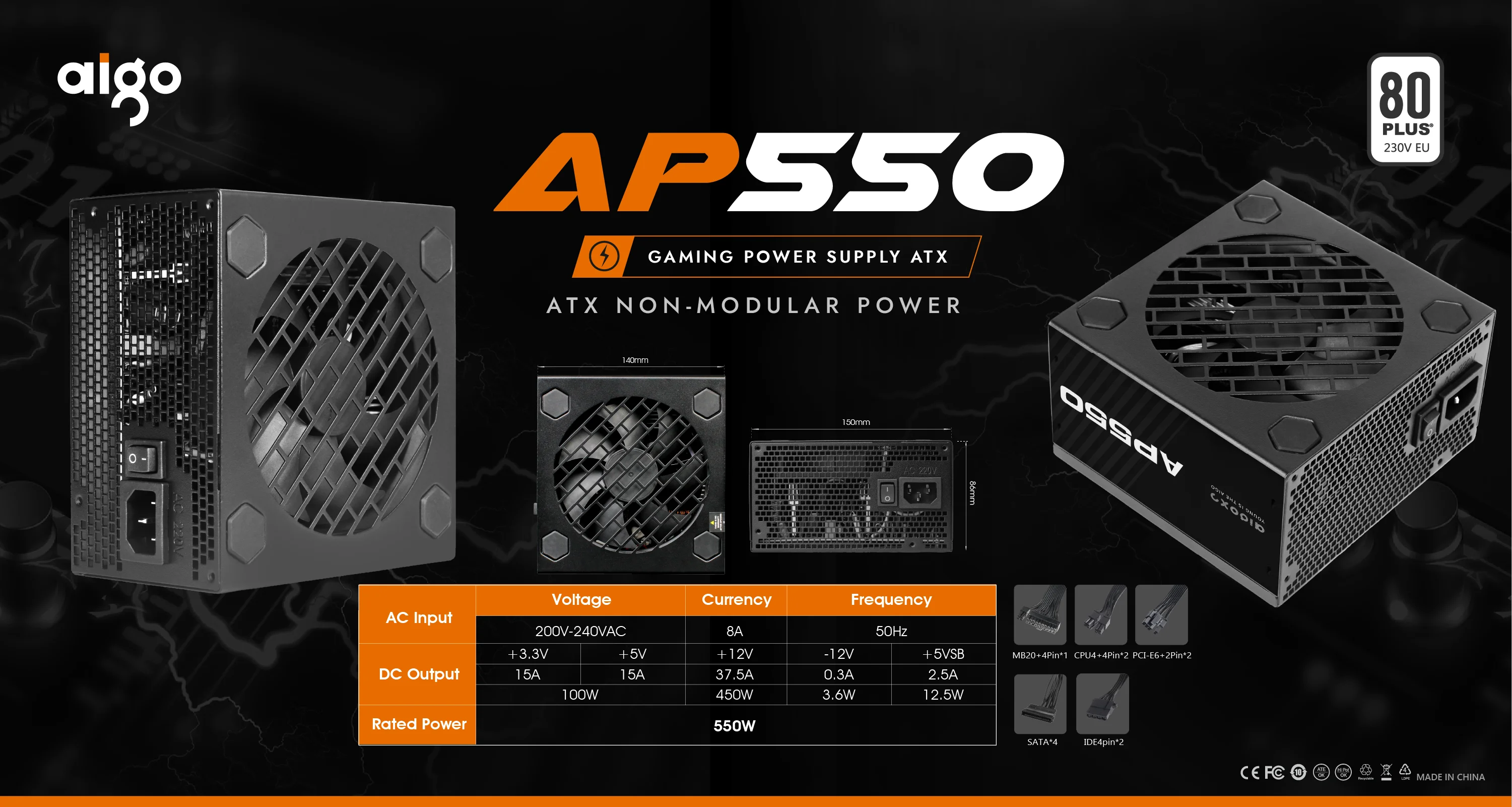 Aigo AP 550W 650W 750W PC PSU unidad de fuente de alimentación negro Gaming silencioso 120mm ventilador 24pin 12V ATX fuente de alimentación de ordenador de escritorio para BTC