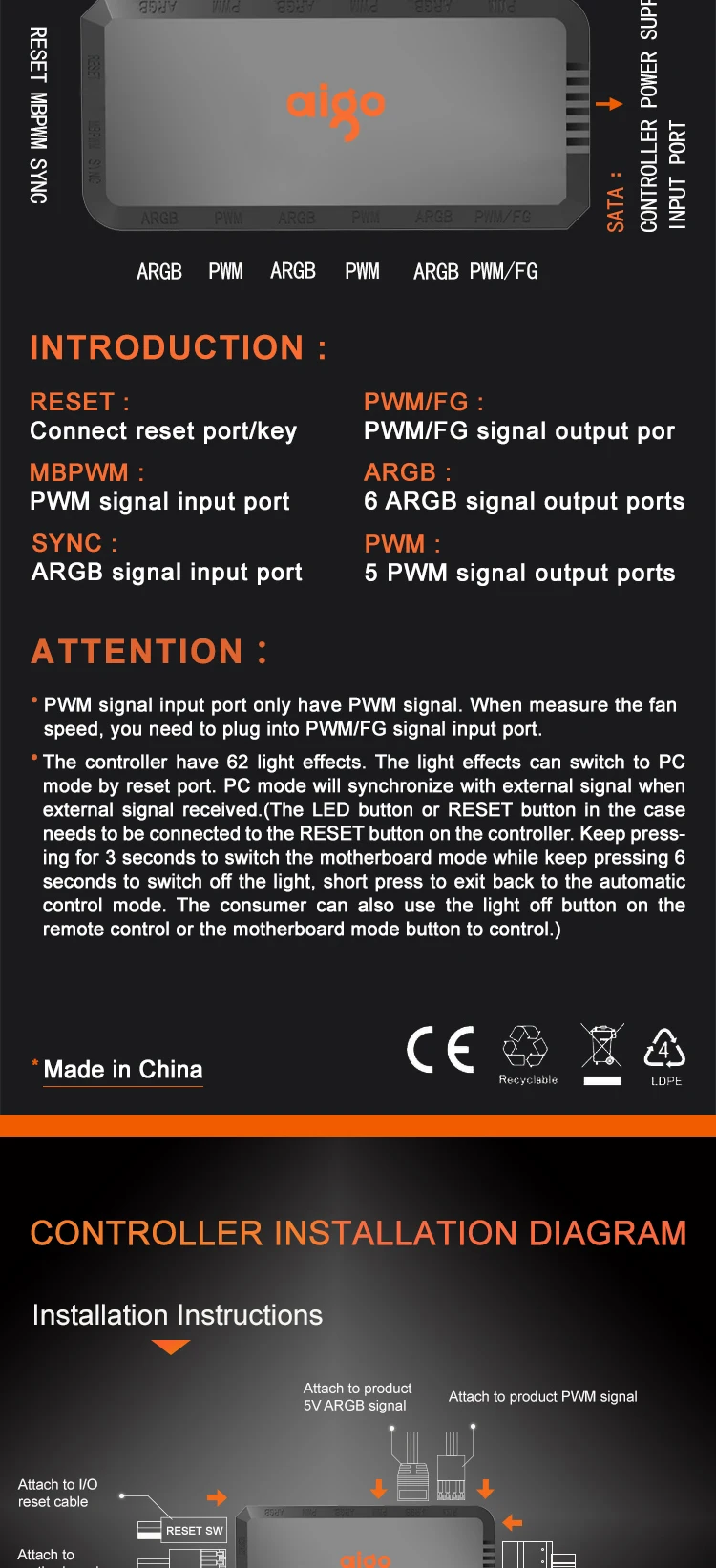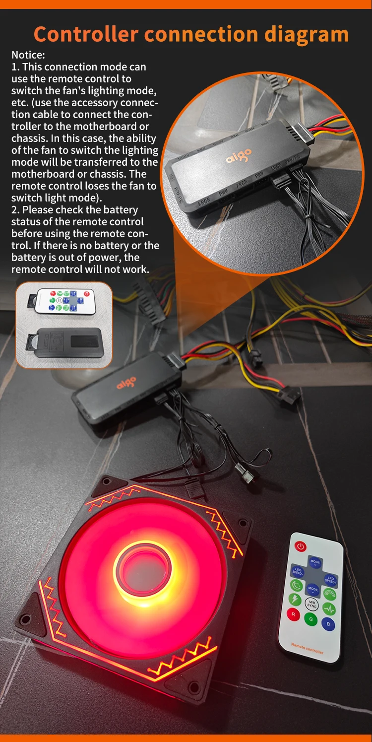 NOTA 02: El controlador de la marca Aigo solo es compatible con los fanáticos de la marca Aigo y no es compatible con los fanáticos de otras marcas (el uso de fanáticos de otras marcas puede causar incompatibilidad).