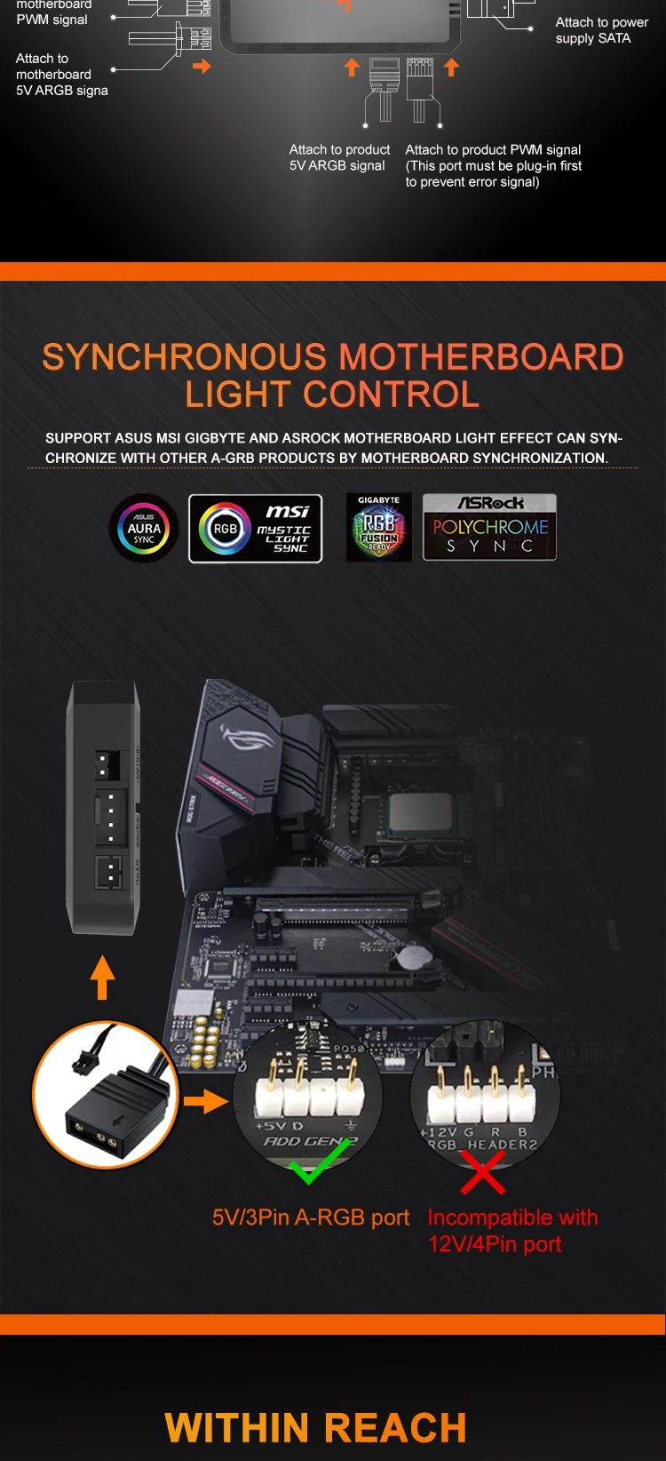 Comprar AIGO APC1 5V 3Pin ARGB controlador ventilador de refrigeración Hub divisor con control remoto 4 pines PWM SATA alimentado Hub PC ventilador regulador para ventilador con cubierta