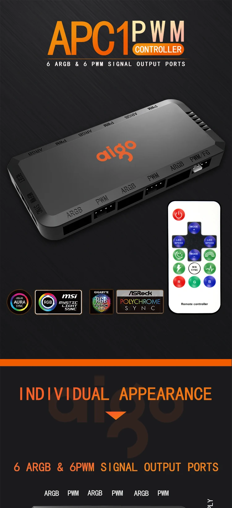 AIGO APC1 5V 3Pin ARGB controlador ventilador de refrigeración divisor de concentrador con control remoto 4 pines PWM SATA alimentado Hub PC regulador de ventilador para estuche ventilador