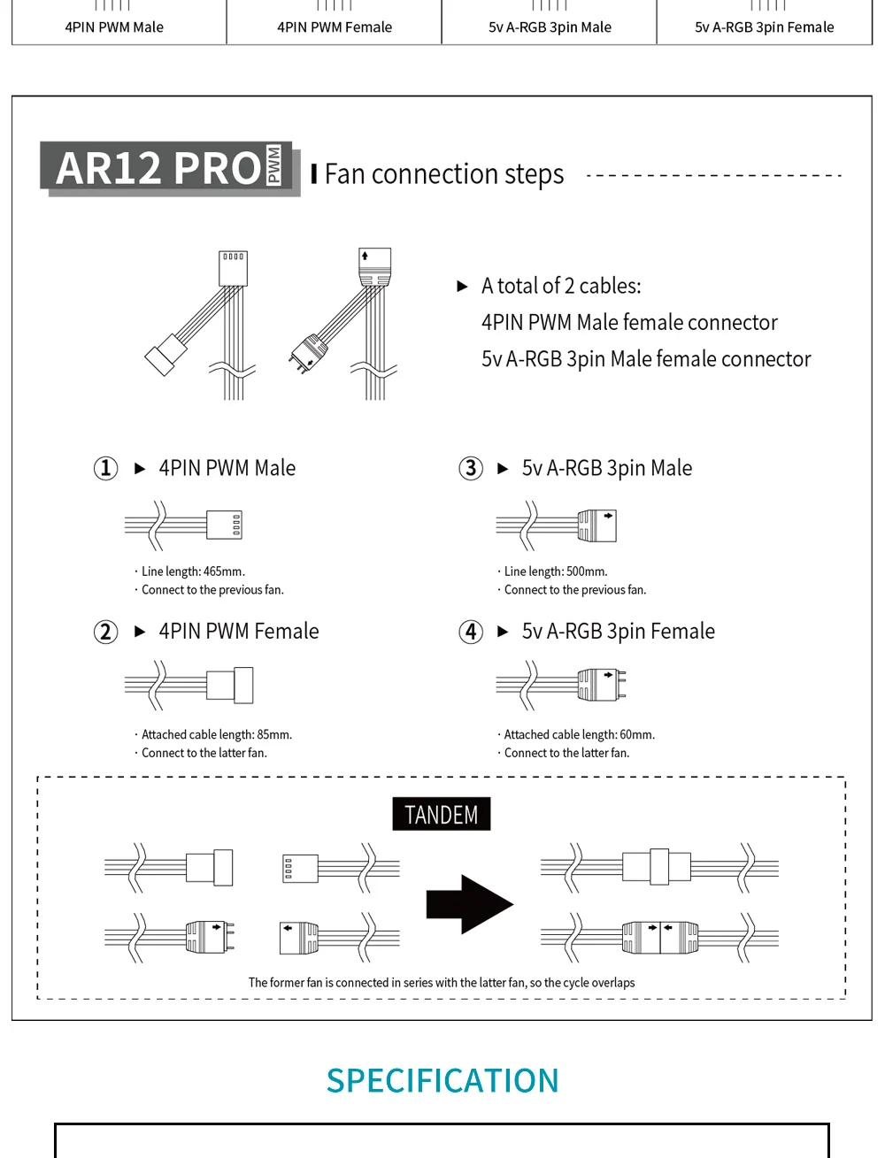 Interfaz de fuente de alimentación: ARGB 3PIN + PWM 4PIN