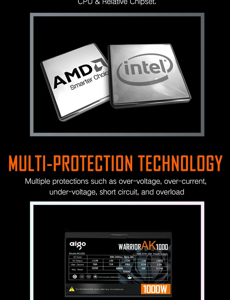 Aigo AK 500W 600W 700W 800W 1000W PC PSU Power Supply unit Black Gaming Quiet 120mm Rgb Fan 24pin 12V ATX Desktop Computer Power Supply For BTC