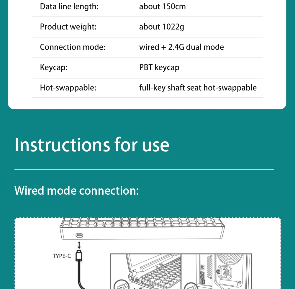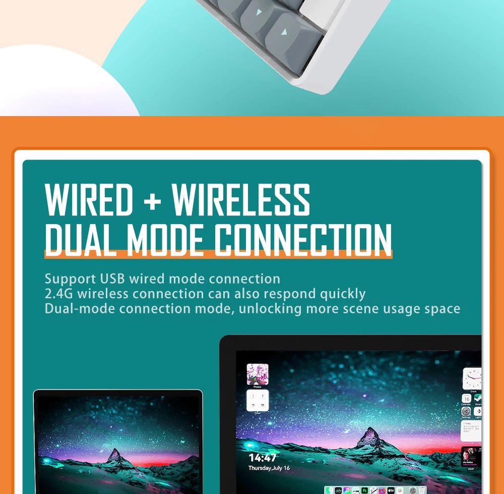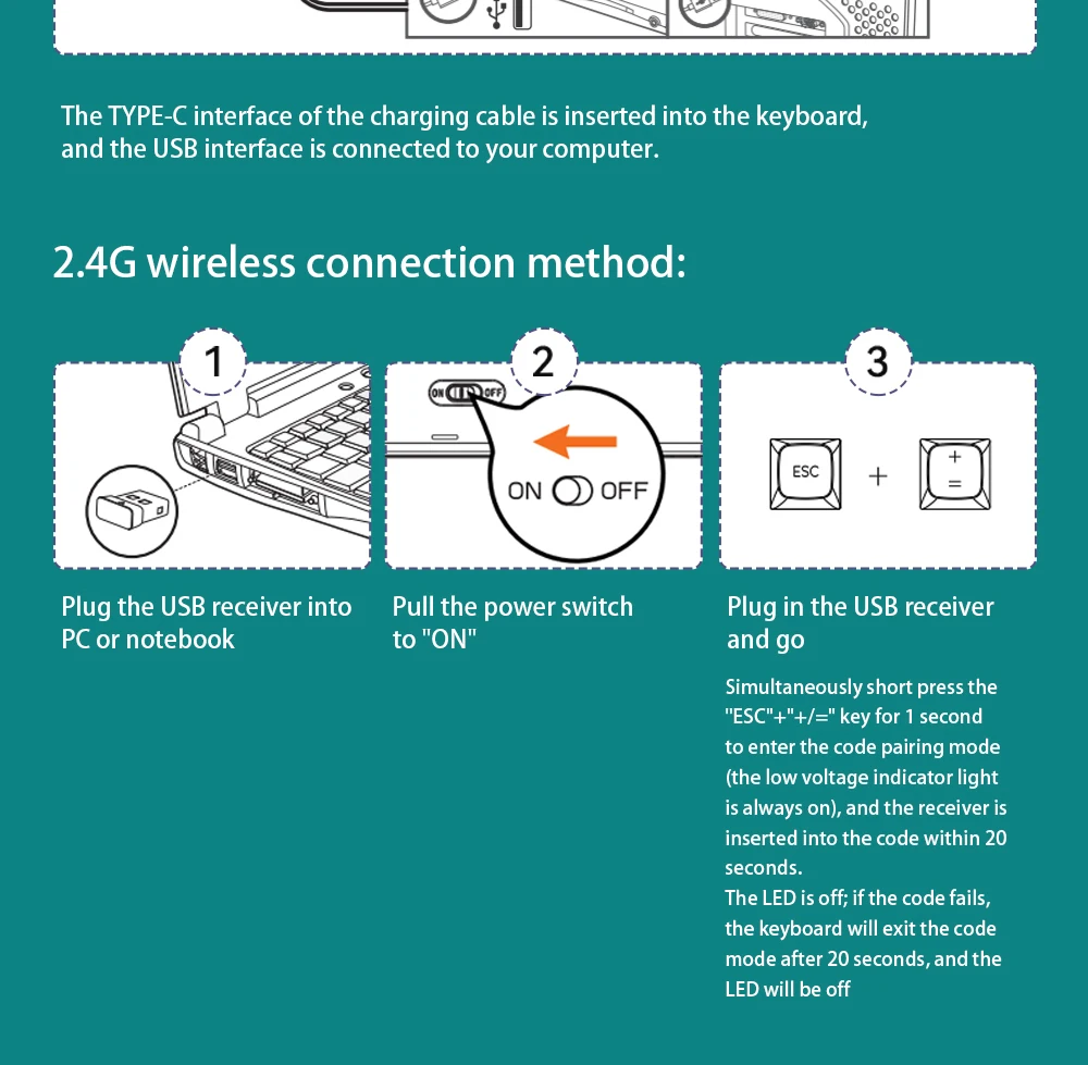 5.Método de conexión: USB tipo C con cable/inalámbrico 2,4G.