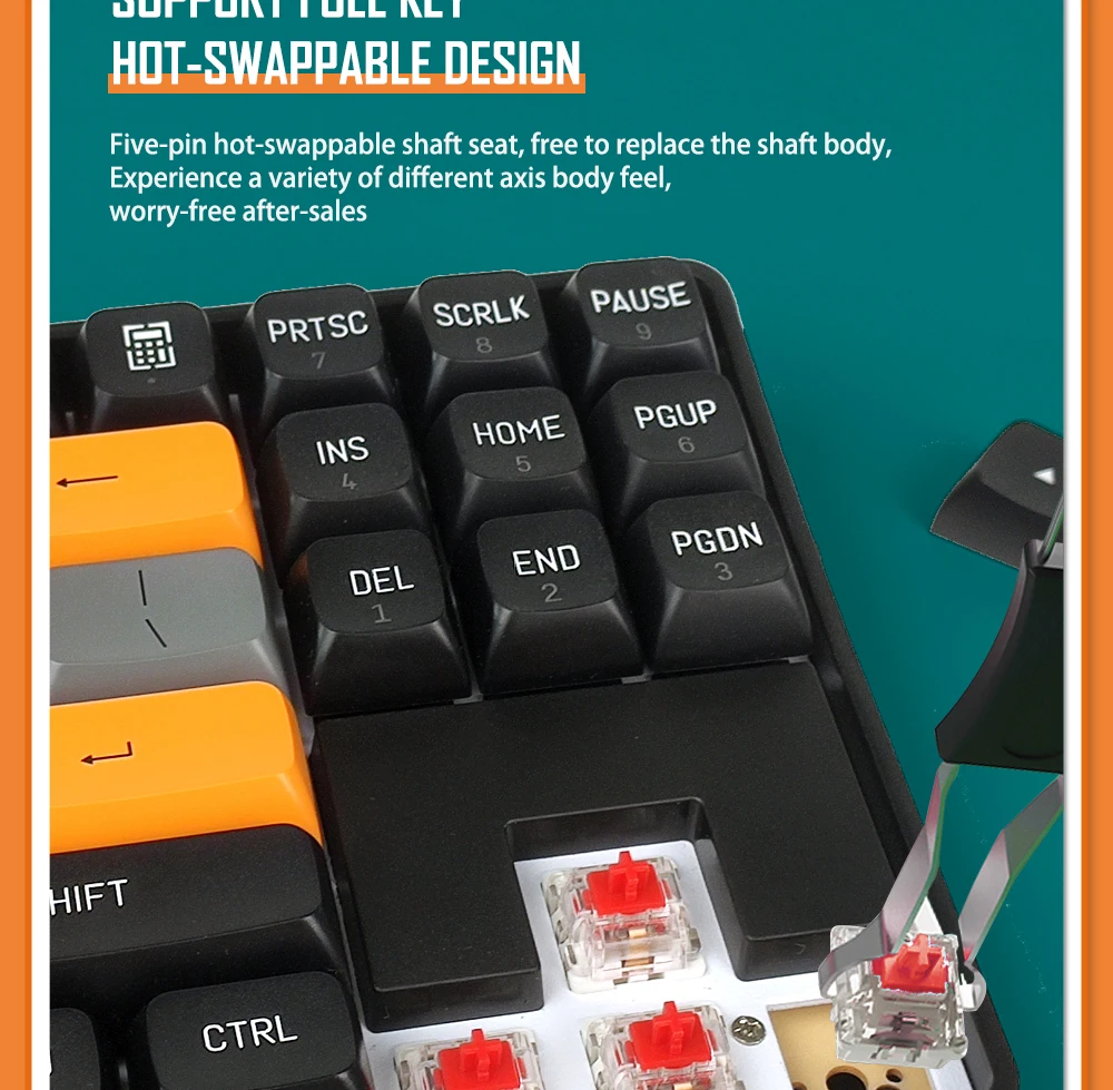8.Admite diseño de llave completa intercambiable en caliente.El asiento del eje intercambiable en caliente de tres patas le permite reemplazar libremente el cuerpo del eje y experimentar una variedad de mangos diferentes.