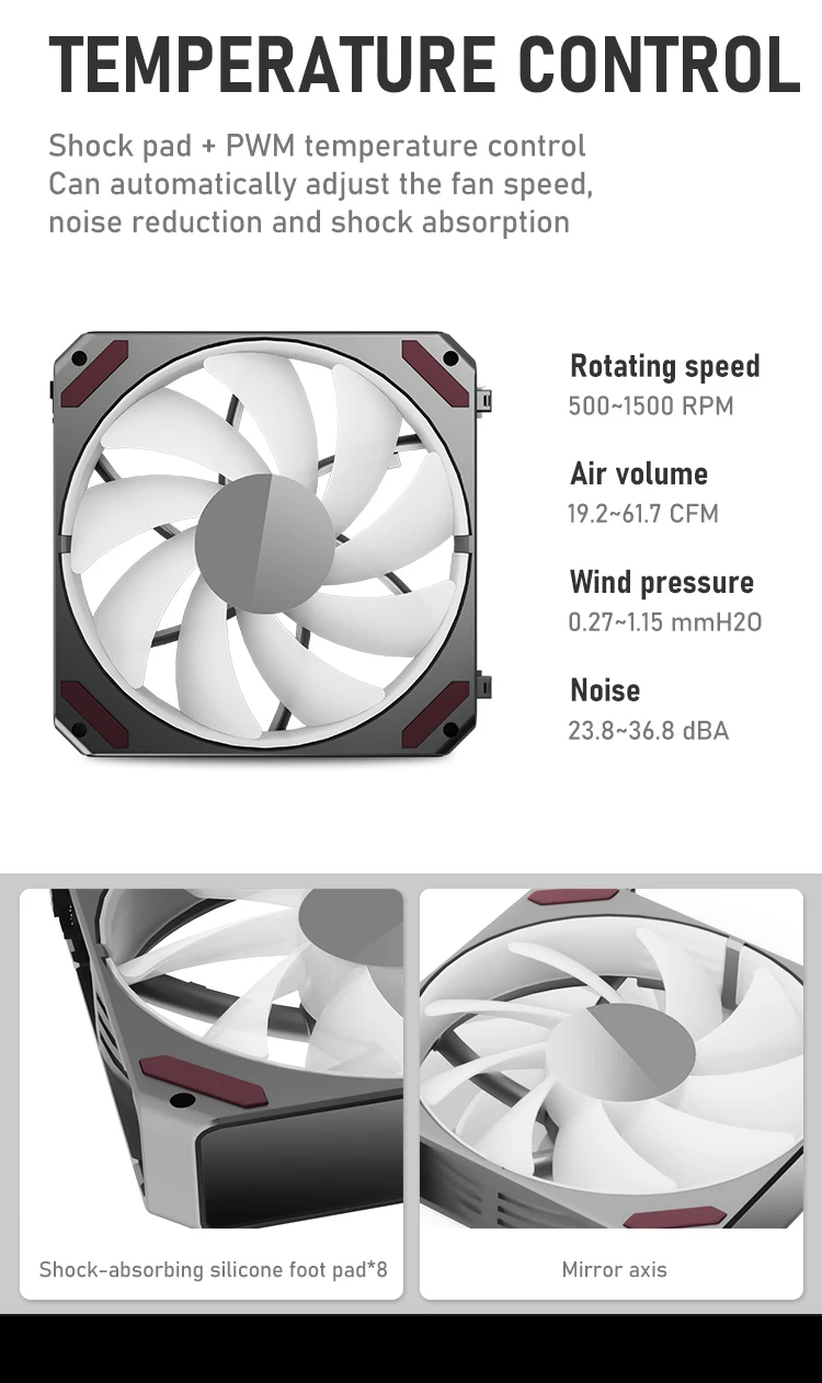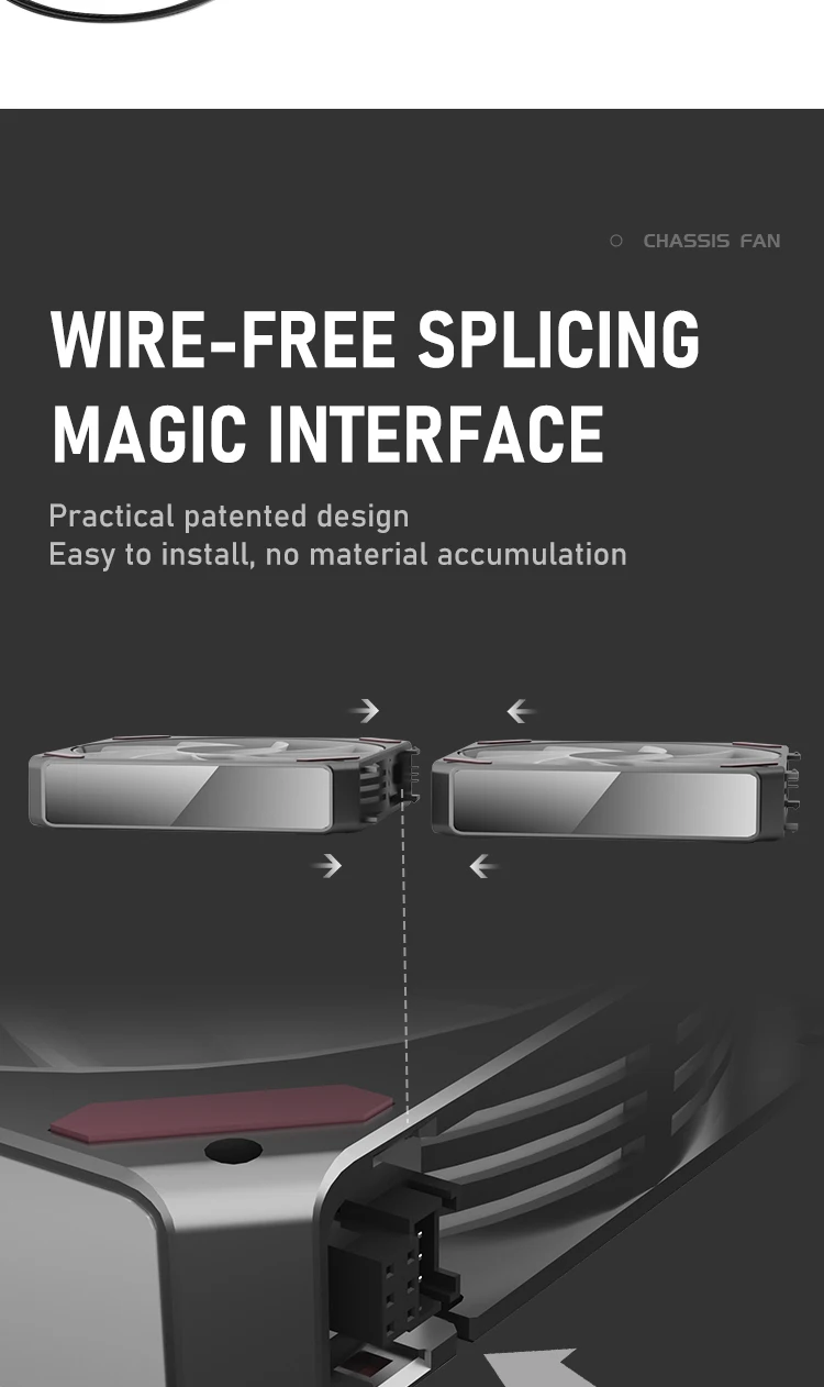 Row fan, wireless harness connection, easy installation, beautiful and tidy. It is suitable for the replacement of the water-cooled radiator fan of high-end gaming players or the rapid cooling of the chassis