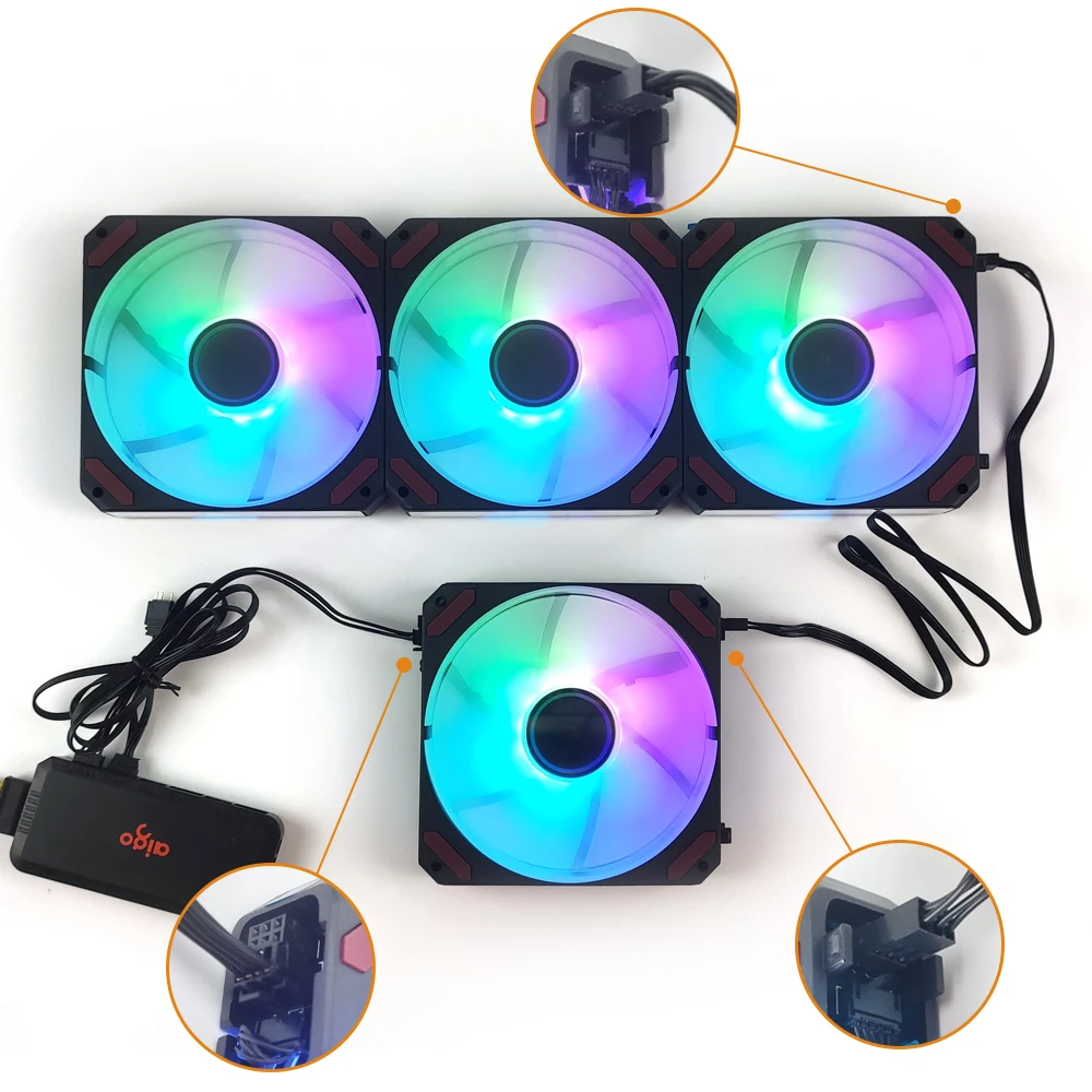 Aigo YOGO L12 3pcs 5PCS Computer Case PC Cooling Fan RGB Adjust LED pwm 120mm Quiet New computer Cooler Cooling ARGB Case Fan CPU
