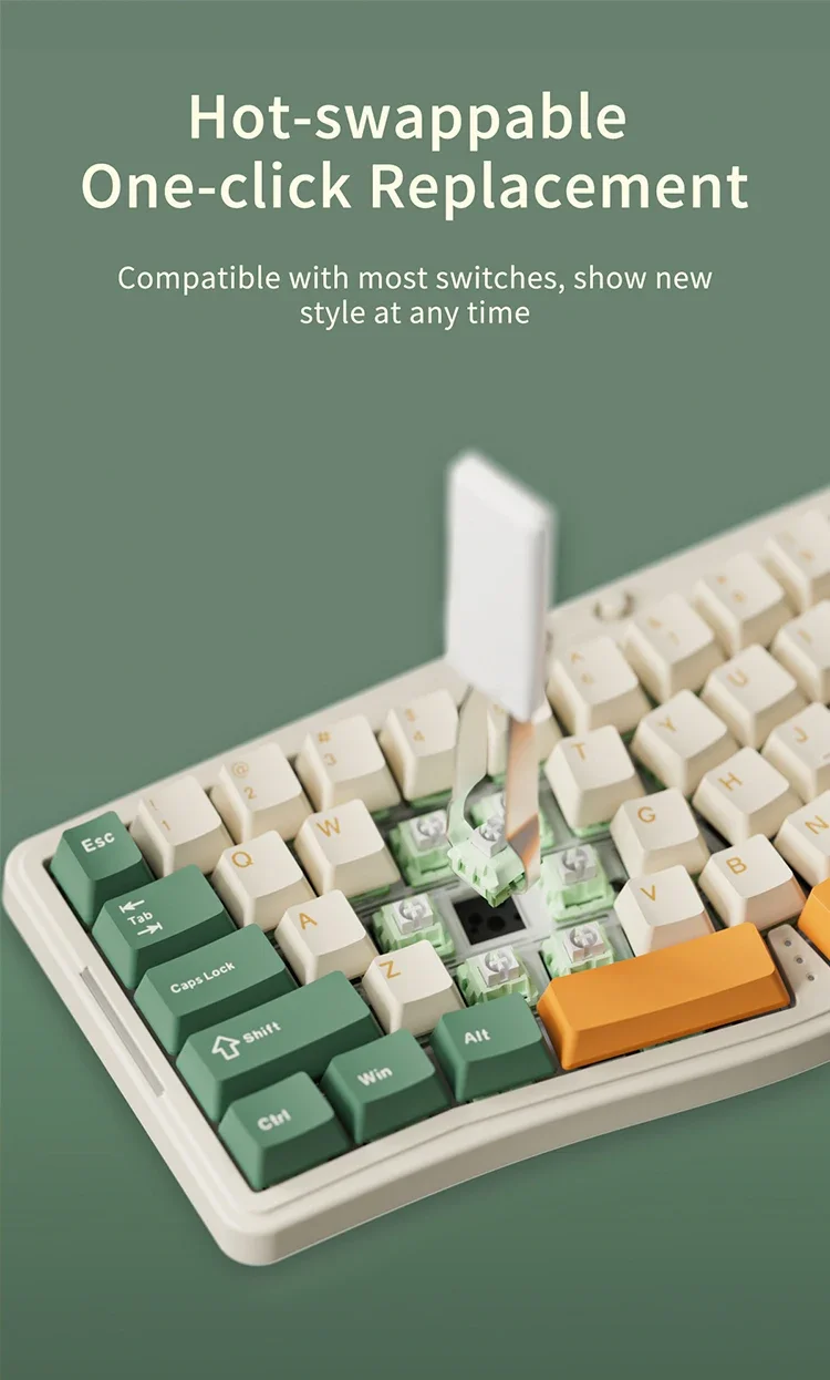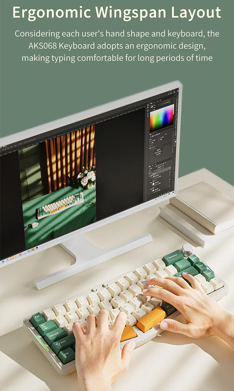 Ajazz AKS068 Pro Alice redefine el diseño ergonómico con su innovador diseño Ergo Alice al 65%.Dividido en dos mitades intuitivas, cada una perfectamente contorneada para una colocación natural de las manos, transforma la escritura en una experiencia cómoda y eficiente.Las características únicas, como la tecla B de un solo toque y la barra espacial dividida, están diseñadas para brindar equilibrio y facilidad.