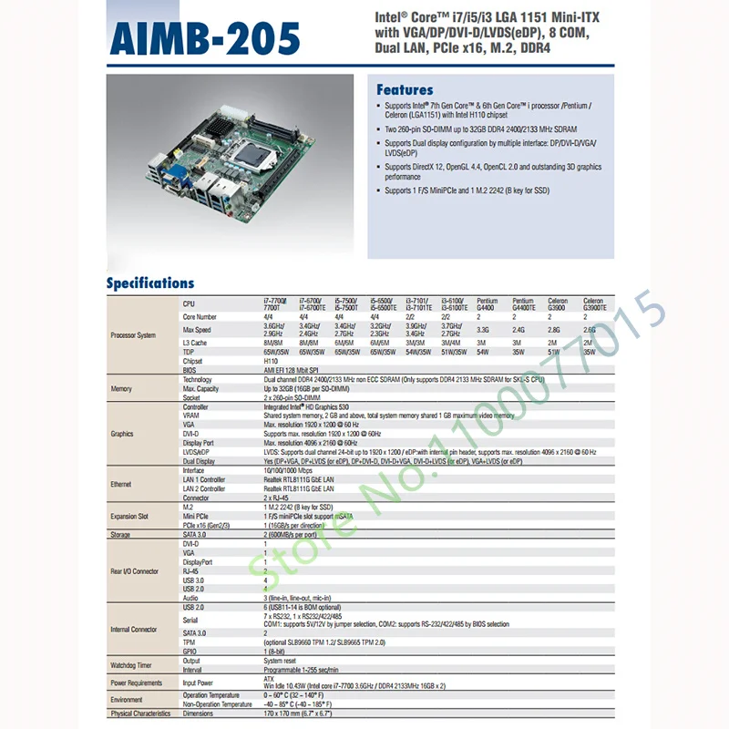 AIMB-205G2 AIMB-205G2-00A1E Original para Advantech placa base Mini-ITX integrada H110 ordenador Industrial 100% probado envío rápido