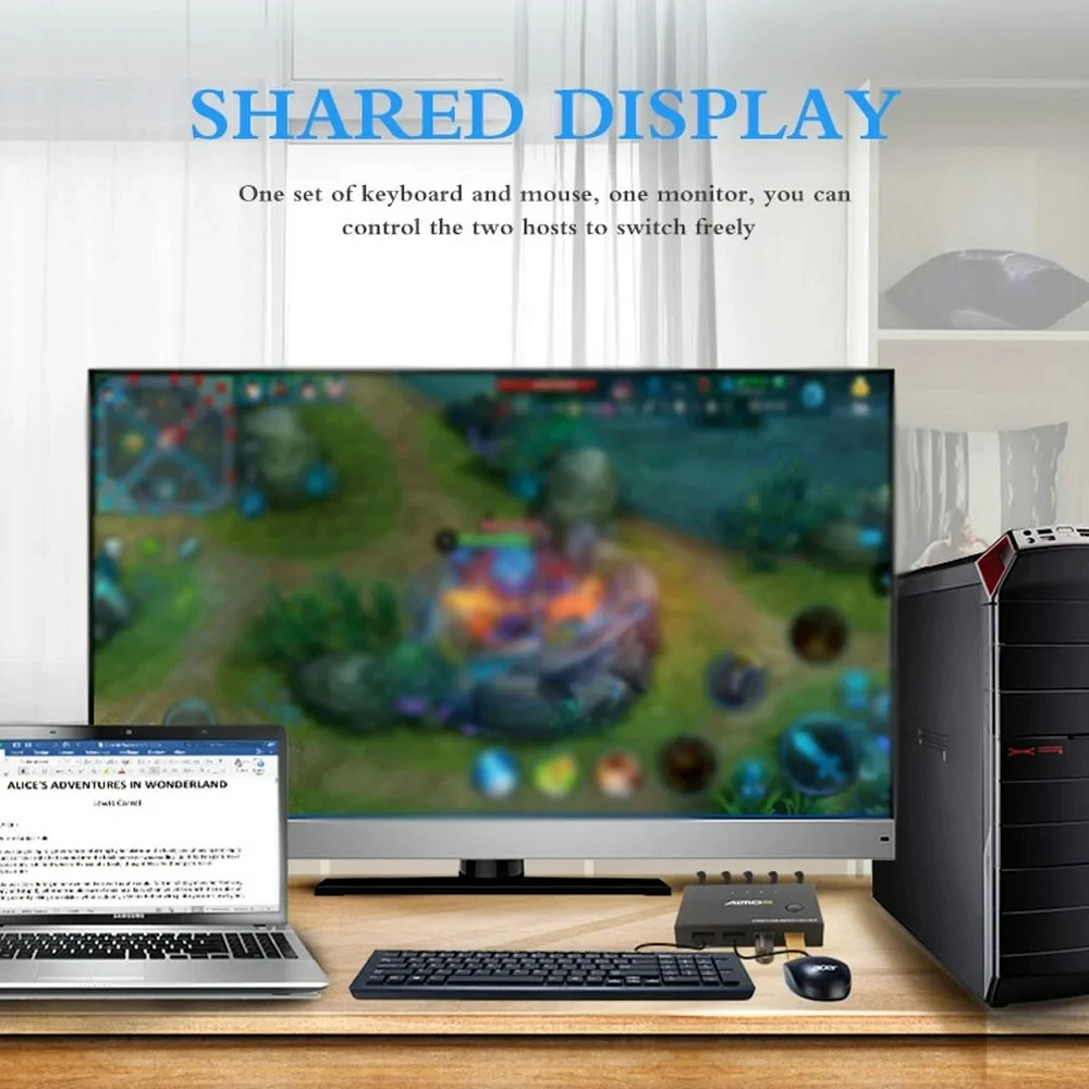 Es adecuado para 2 piezas para compartir teclado, ratón, impresora y más. Ideal para el hogar, la Oficina, la sala de ordenadores y más escenas disponibles.