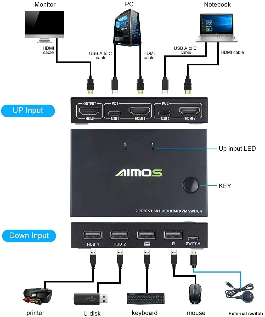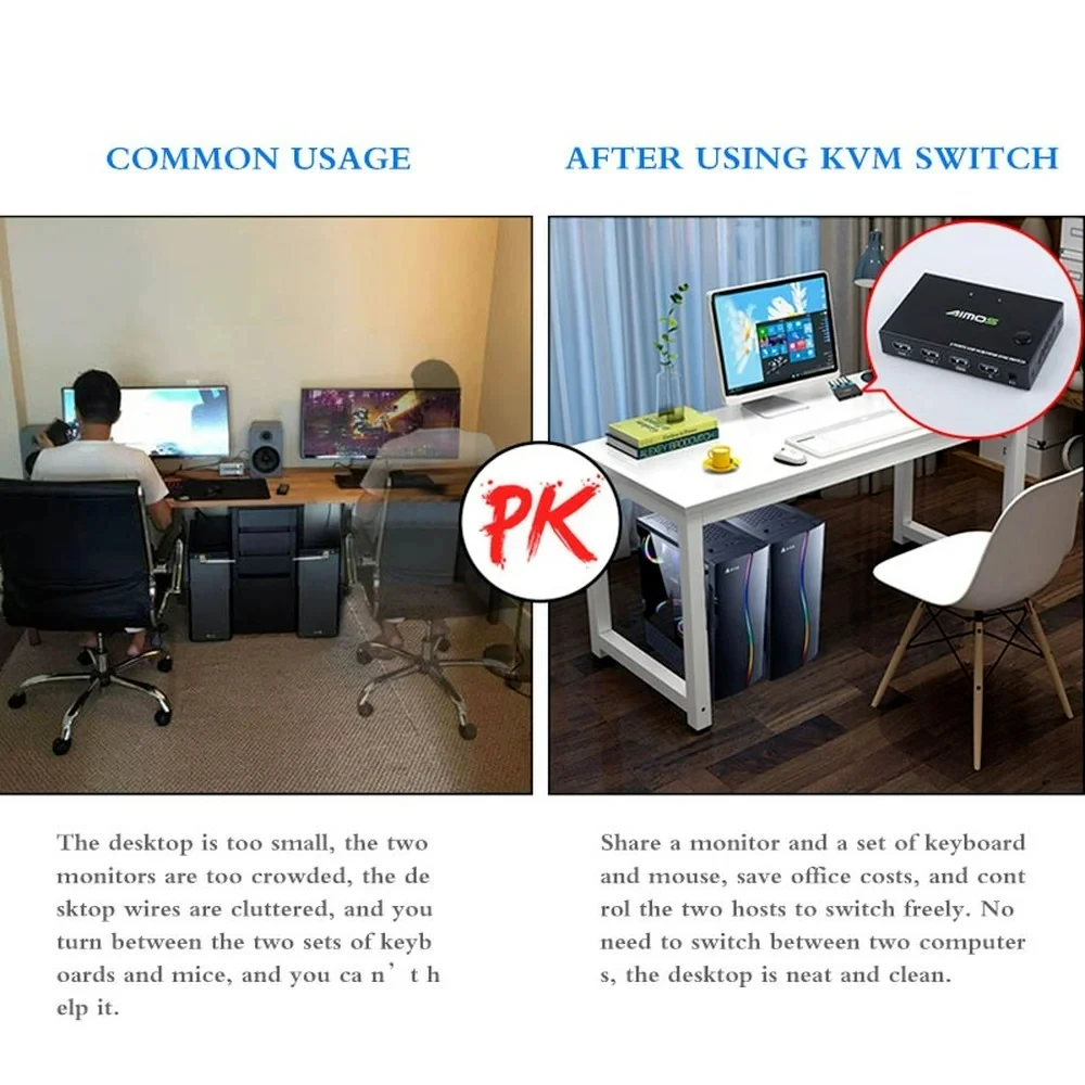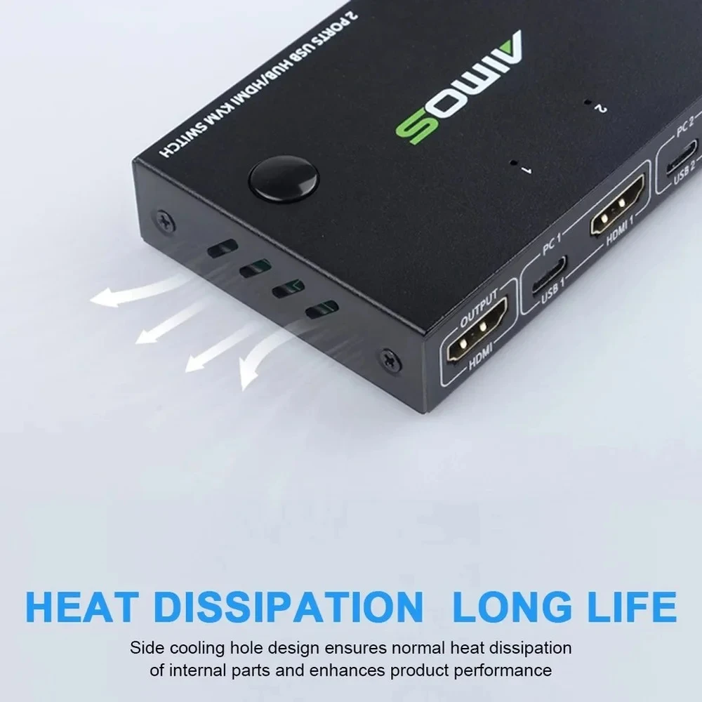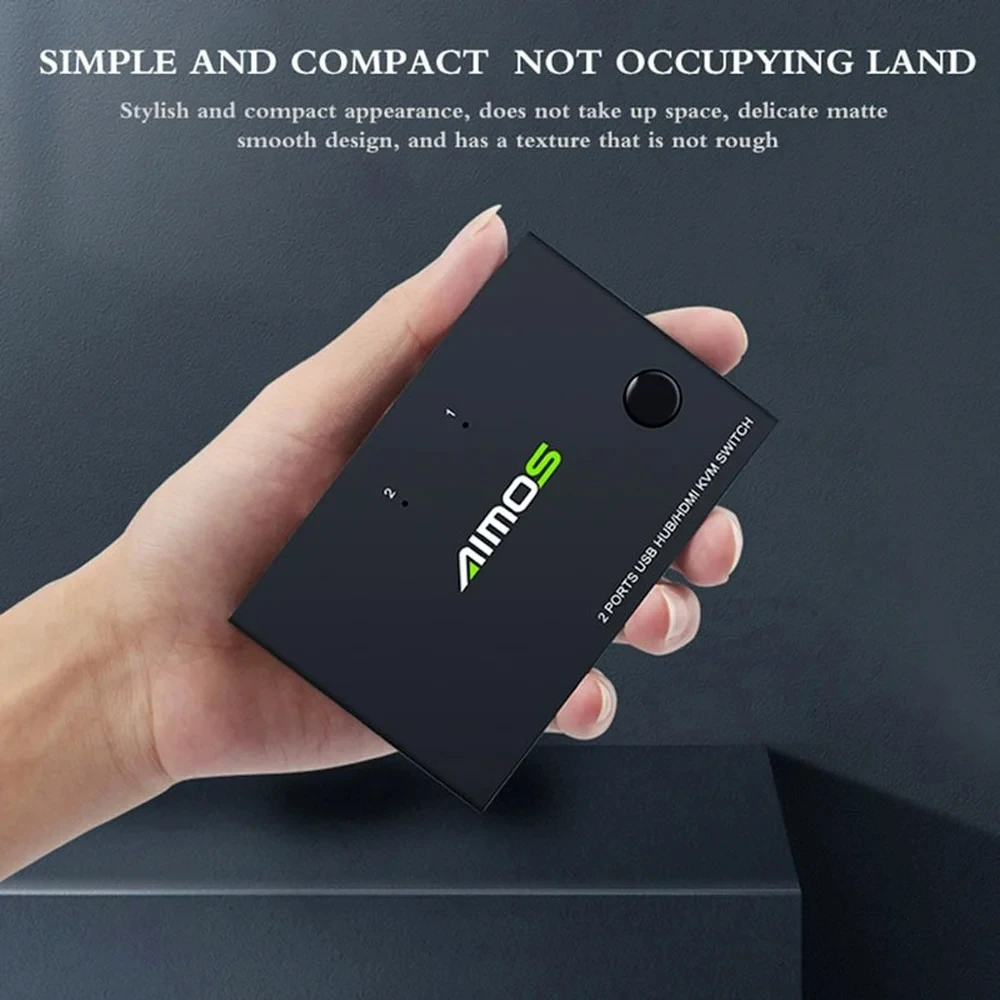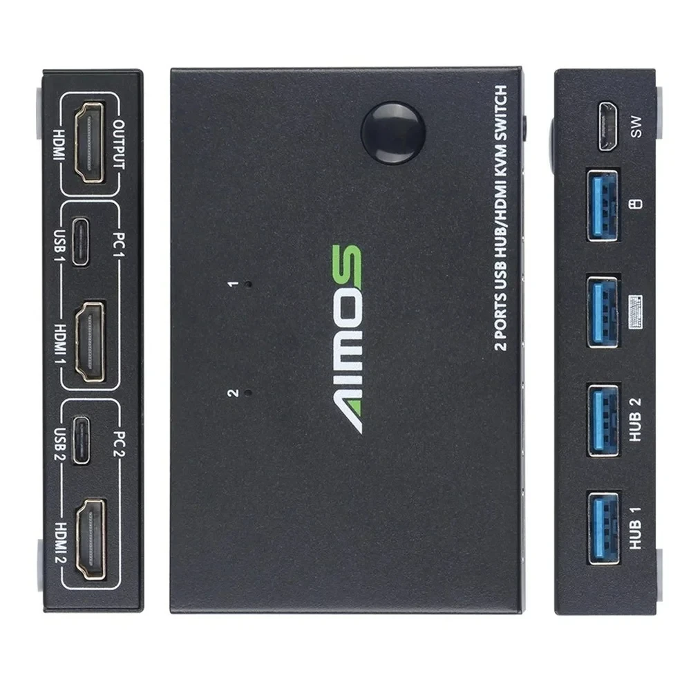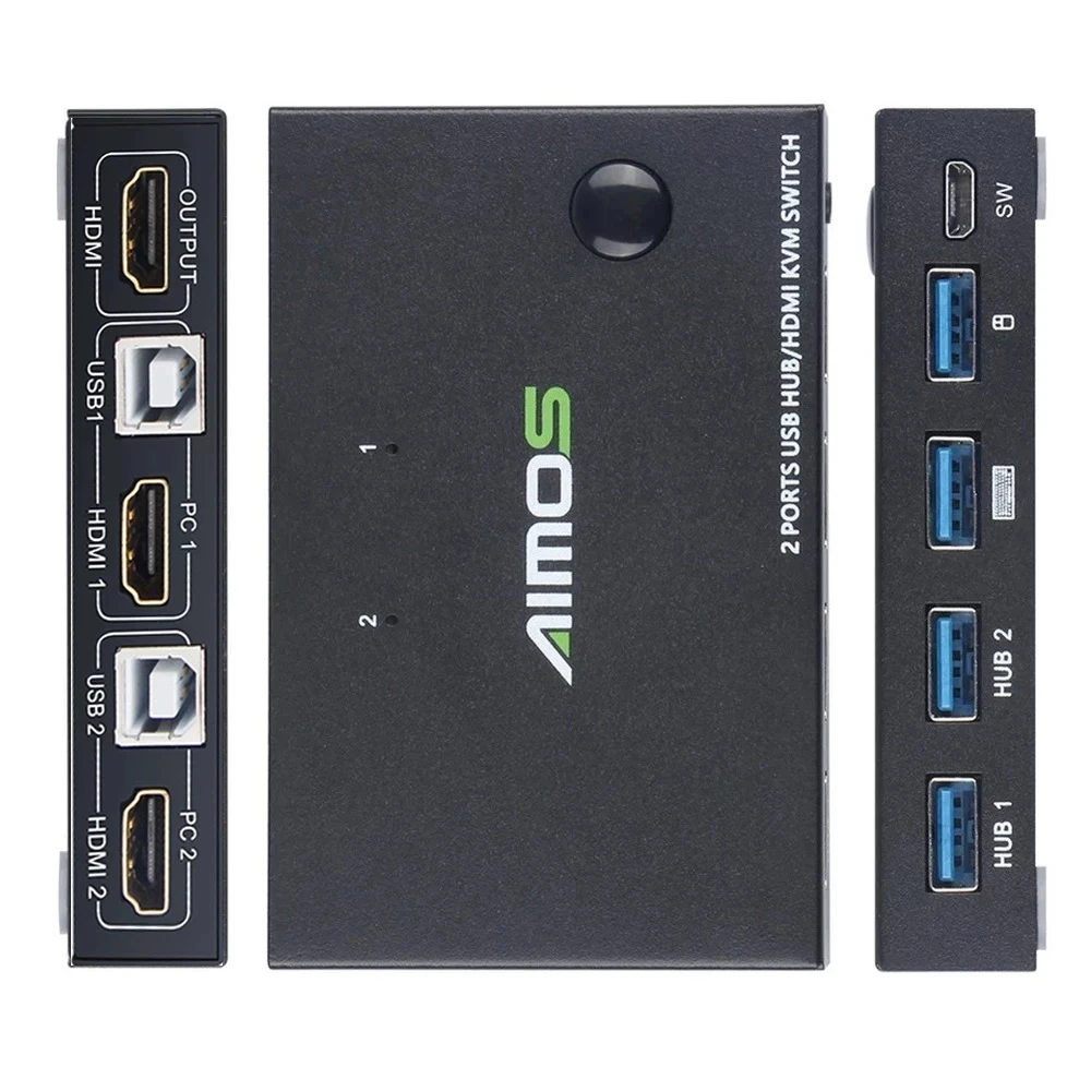 Comprar Aimos-caja de interruptor 2 en 1, salida 4K, USB, HDMI, KVM, para 2 PC, compartir teclado, ratón, impresora, enchufe, pantalla de vídeo, USB, divisor Swltch