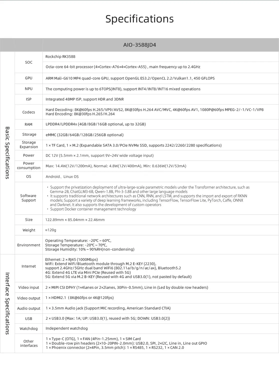 Comprar AIO-3588JD4 6TOPS AI Placa base Modelo grande 8K Decodificación Edge Computing Ruixin Micro RK3588