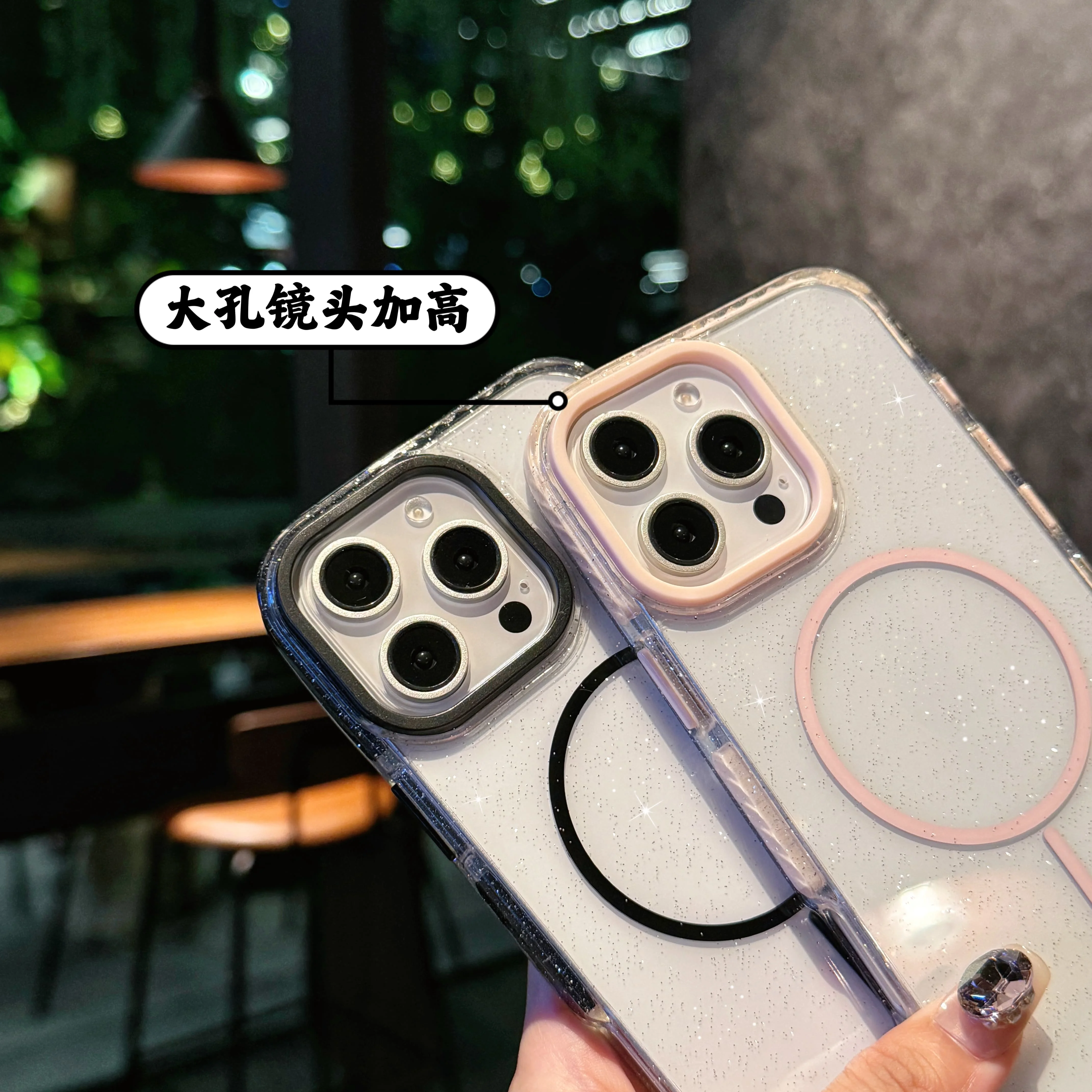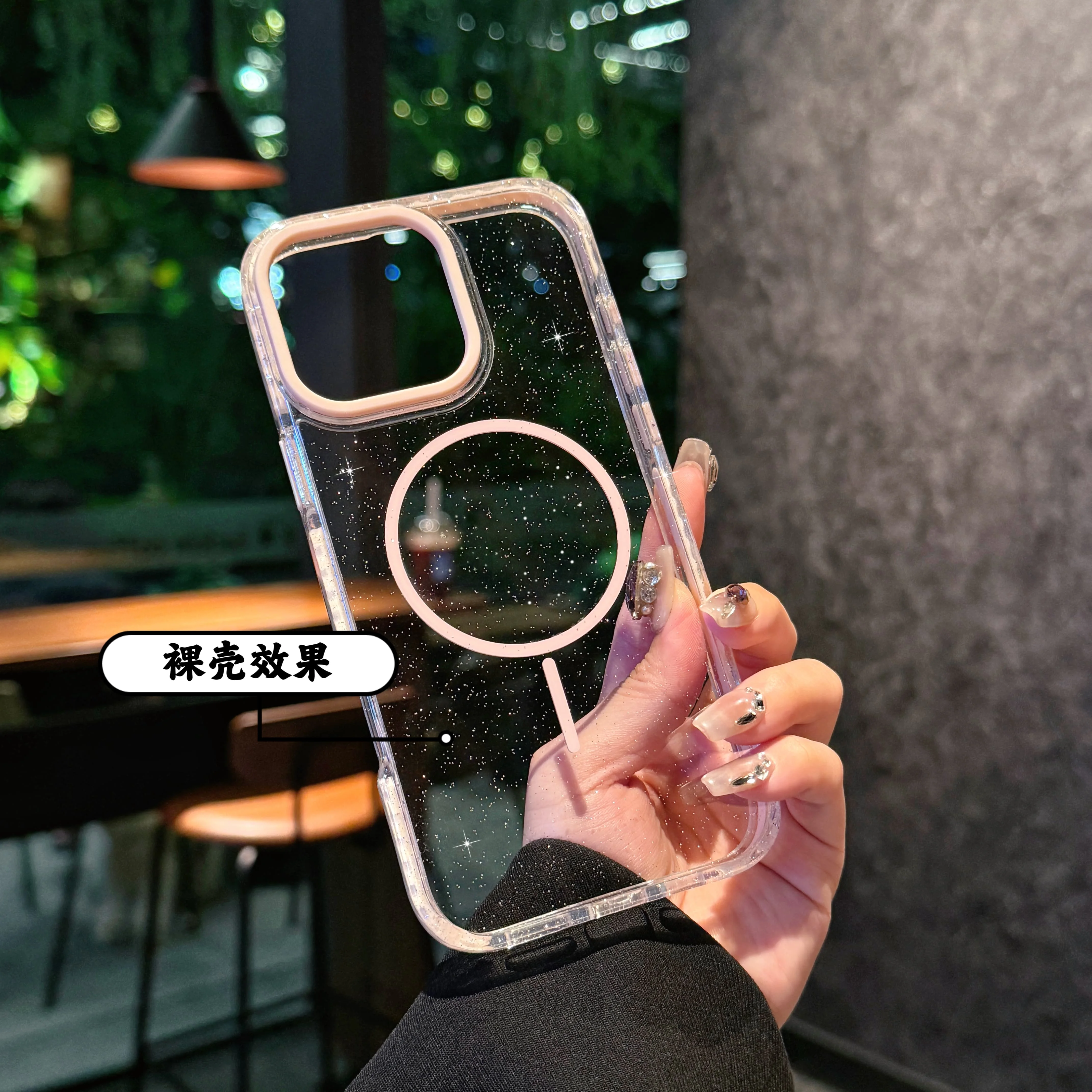 Airbag de lujo de dos colores con brillo estrellado para funda de teléfono Magsafe para iPhone 16 15 14 Plus 13 12 11 Pro Max funda de parachoques a prueba de golpes