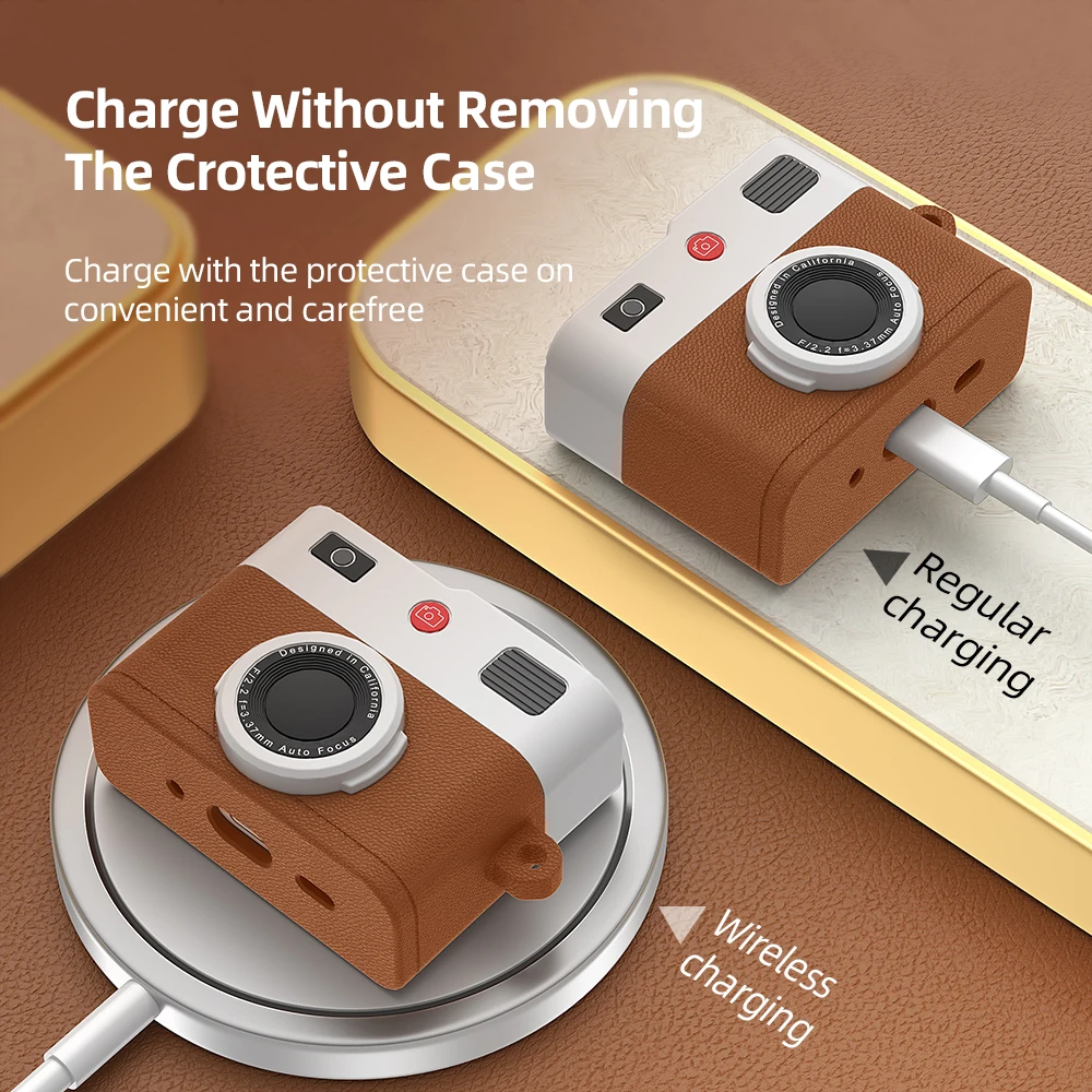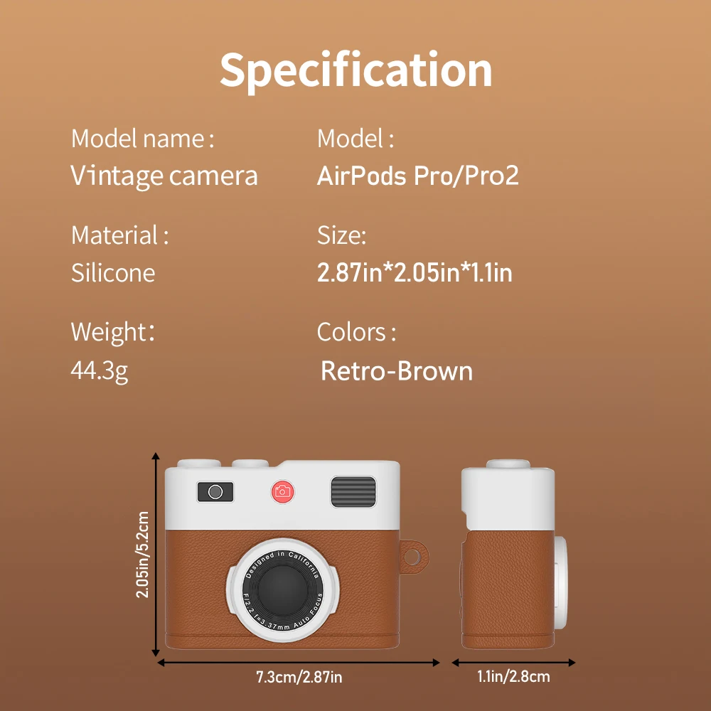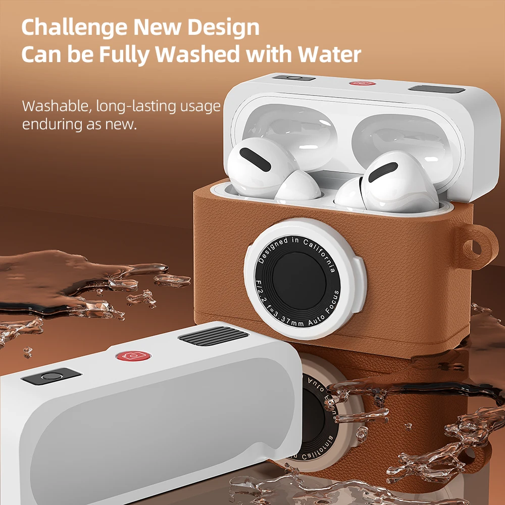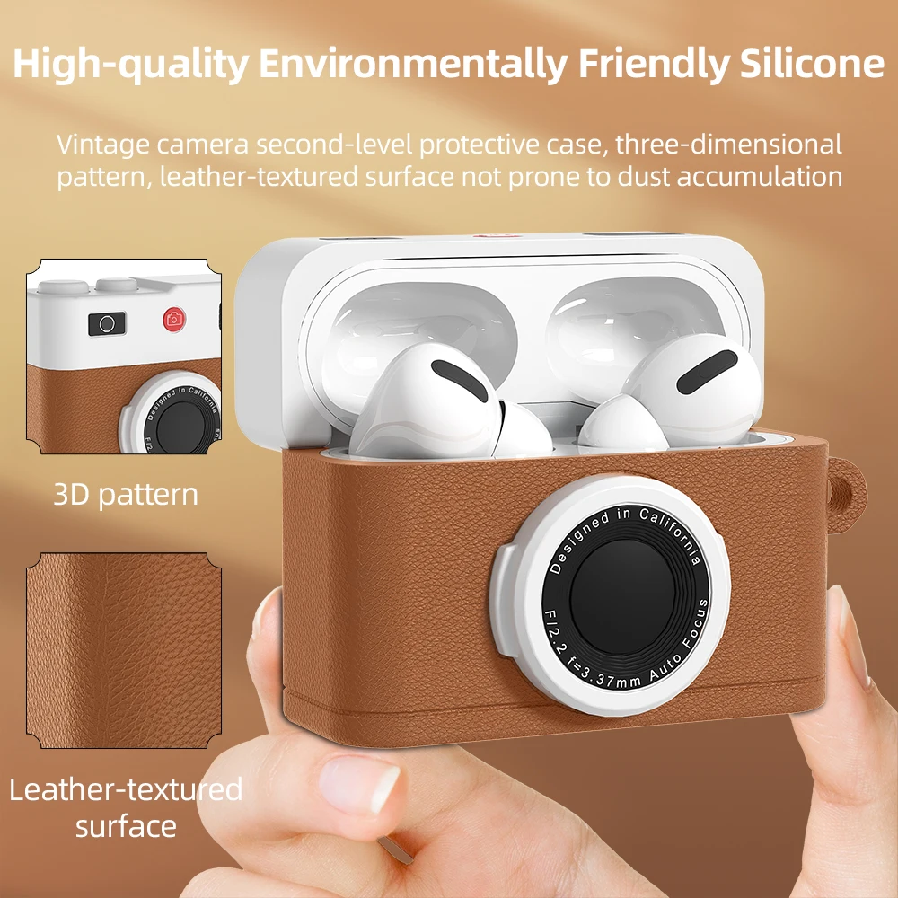 Comprar Para AirPods Pro/Pro2/4 funda protectora para auriculares moda cámara Retro diseño 3D funda con cordón de silicona a prueba de caídas marrón