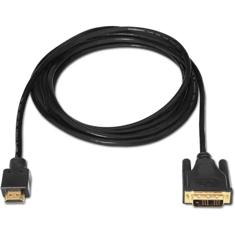 Cable DVI a HDMI de Aisens con conector tipo DVI 18+1 macho en un extremo y HDMI tipo A macho en el otro. Conector HDMI de alta calidad blindado en oro de 24K.