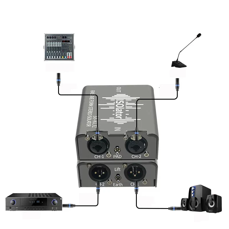 Este aislador de señal de audio XLR adopta el aislador de audio de material Permalloy importado para hacer la conexión de audio perfecta.