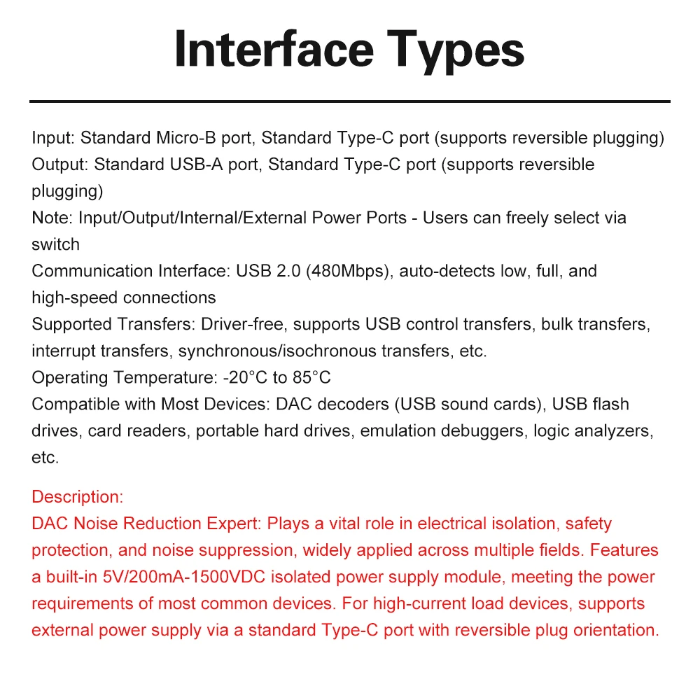 Experto en reducción de ruido DAC: juega un papel importante en el aislamiento eléctrico, la protección de seguridad, la supresión de ruido y se usa ampliamente en múltiples campos.Módulo de alimentación aislado integrado de 5 V/200 mA-1500 V CC, que puede satisfacer las necesidades de suministro de energía de los dispositivos más comunes.Para dispositivos de carga de alta corriente, se admite una fuente de alimentación externa y la interfaz de alimentación es un puerto estándar tipo C, que admite enchufes positivos y negativos.